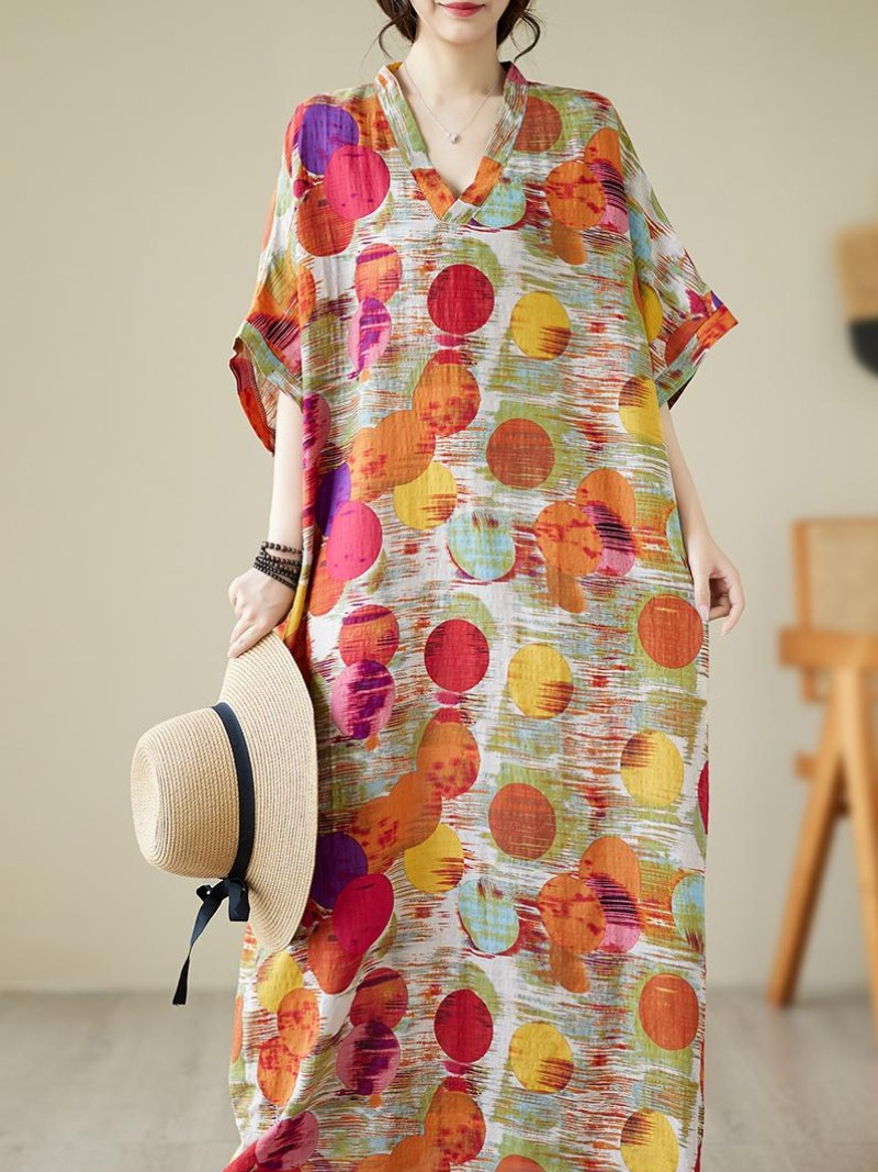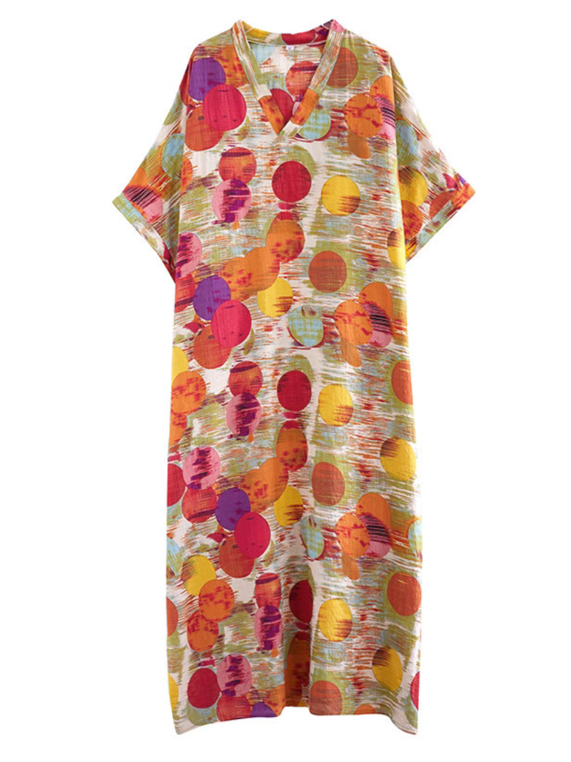 Women's V-neck Kaftan Dress. a perfect blend of comfort and style. This dress is made from a premium fabric composition of 65% cotton and 35% viscose fiber. ensuring a soft and breathable feel against your skin. Available in vibrant orange and soothing blue colors. it offers options to suit your personal taste. The elegant V-neck adds a touch of femininity. while the short bat sleeves provide a relaxed and effortless look. Designed with comfort in mind. this kaftan dress is perfect for casual occasions or even as a beach cover-up. Embrace effortless style and comfort with this versatile and fashionable dress.