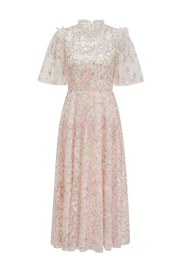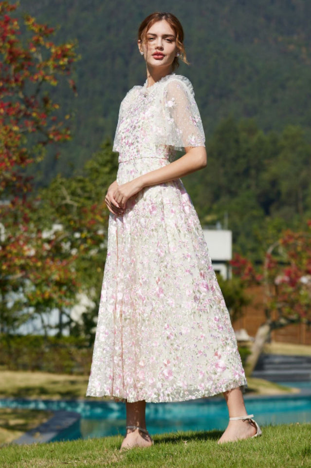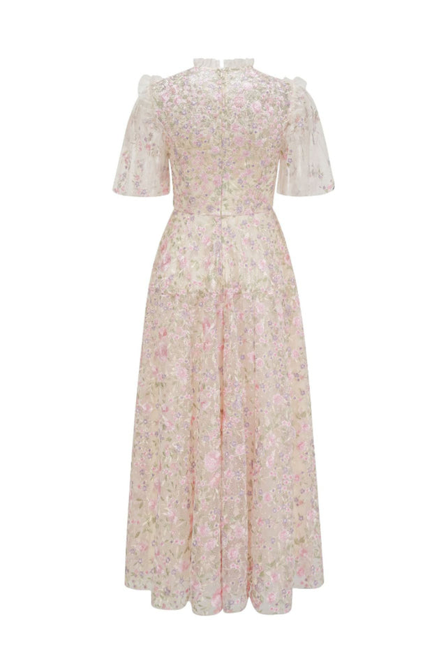 Lavish Embroidered Tulle Maxi Dress