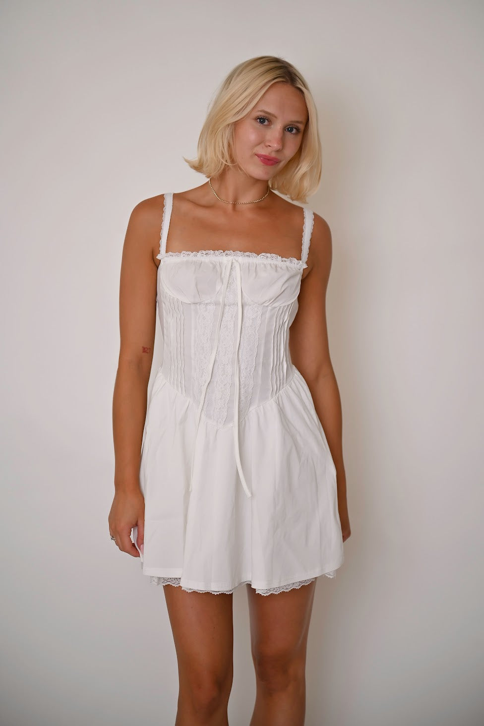 This Little White Dress offers a stylish and feminine look with its mini length and cute design. Perfect for any occasion, this dress will make you stand out in a classic yet modern way. Upgrade your wardrobe with this timeless piece.