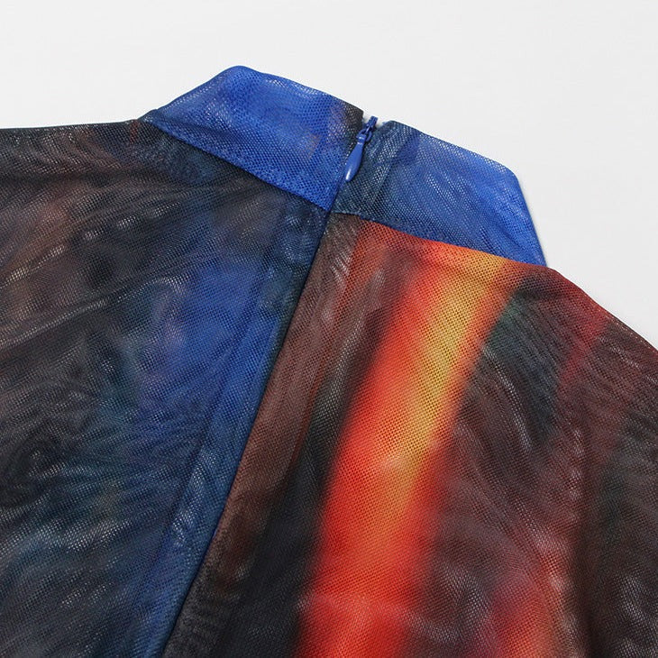 MULTI COLOR Mini Dress with SIDE TRAIN