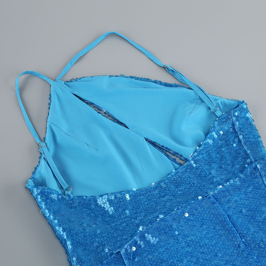 Opulent Mermaid Effect One Shoulder CutOut Thigh Split Maxi Sequin Evening Dress