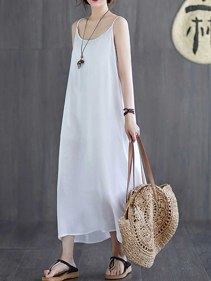 Summer is the time to break out the dresses and this A-Line dress is perfect for any occasion! The sleeveless design keeps you cool while the loose waist flatters any figure. The plain cotton material comes in a variety of colors. so you're sure to find one that's perfect for you. Whether you're going to the beach or a backyard barbecue. this dress will have you looking your best.