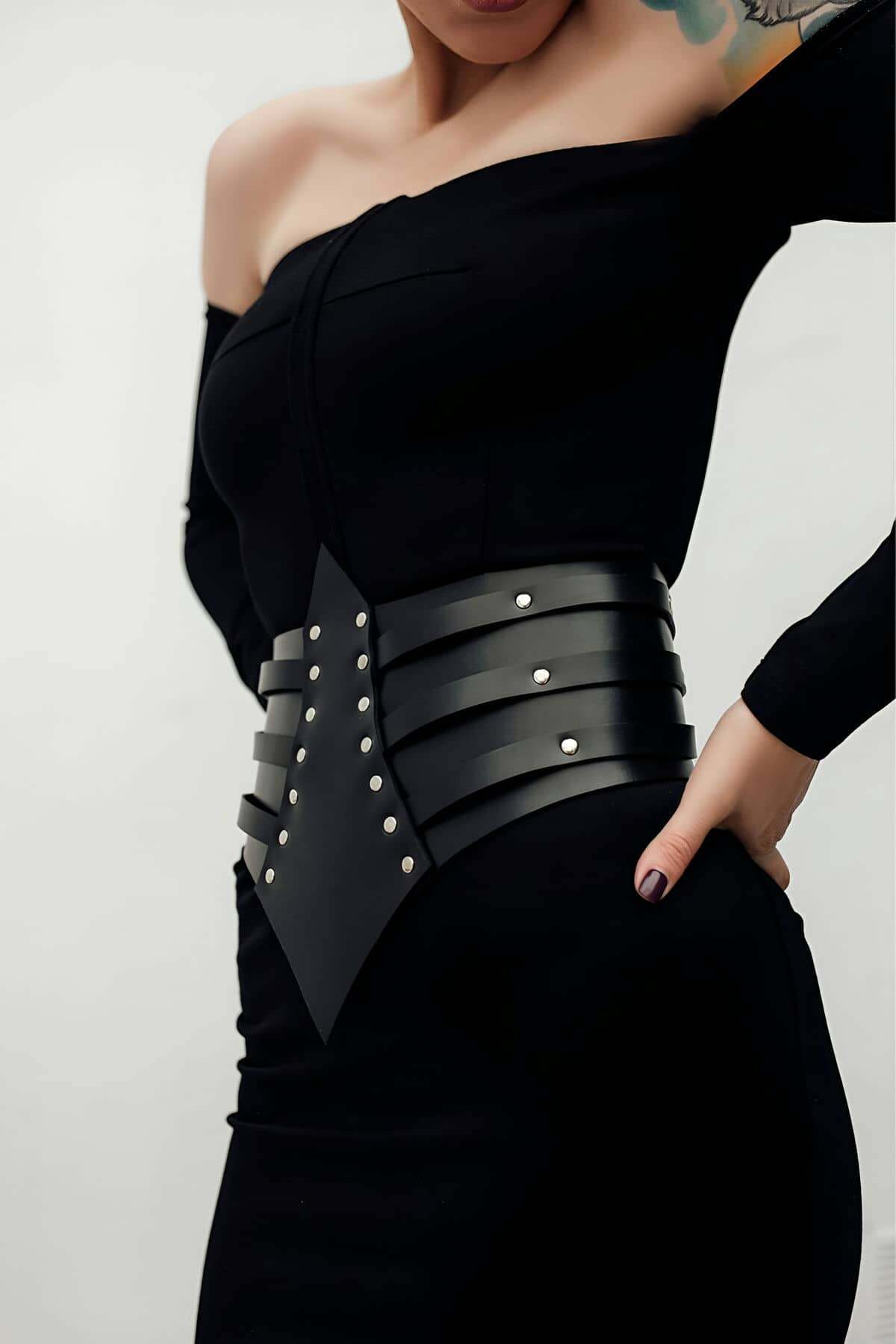 Rivet Detailed, Stylish Dress Over Leather Corset Belt, Dress Belt