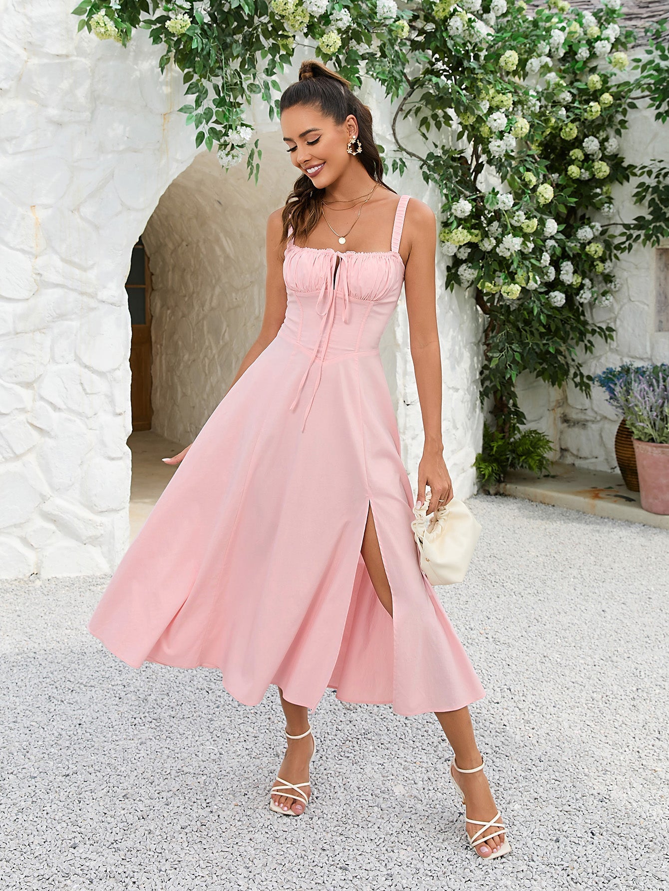 Ruched Bust Split Hem Crisscross Back Dress