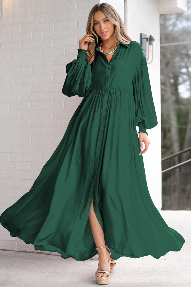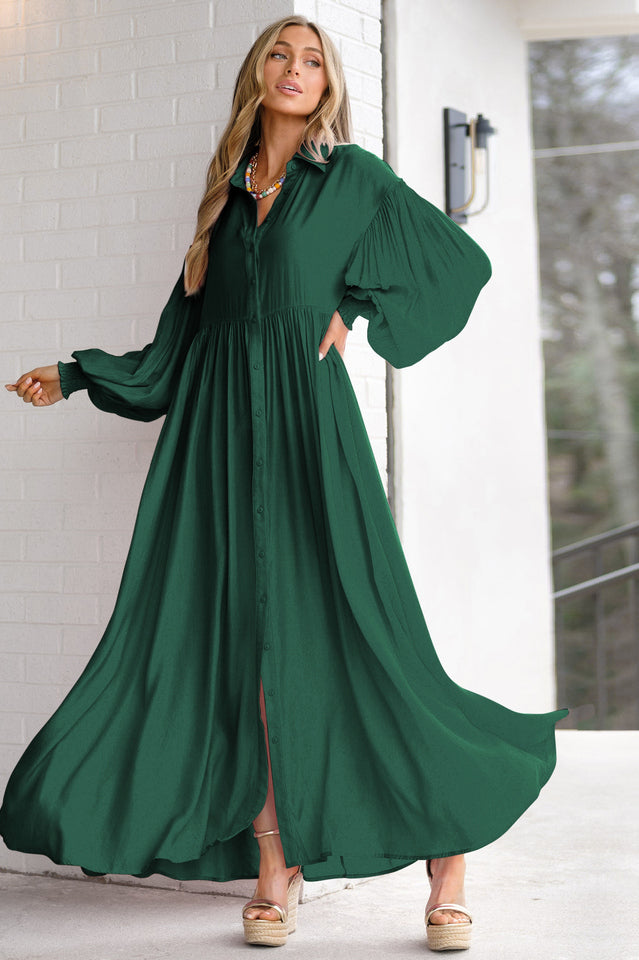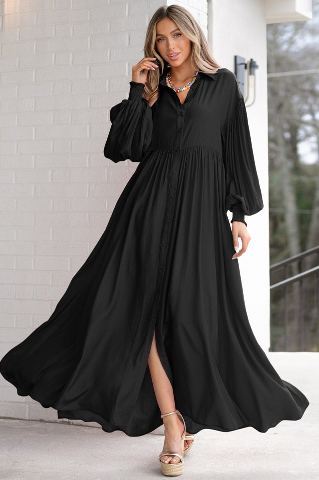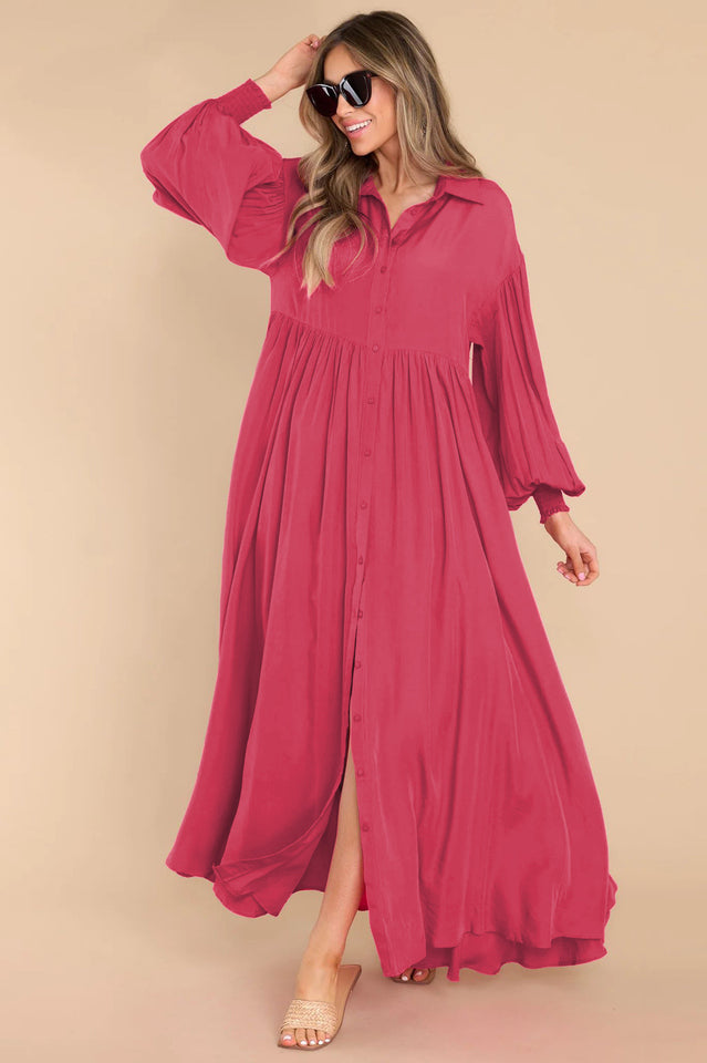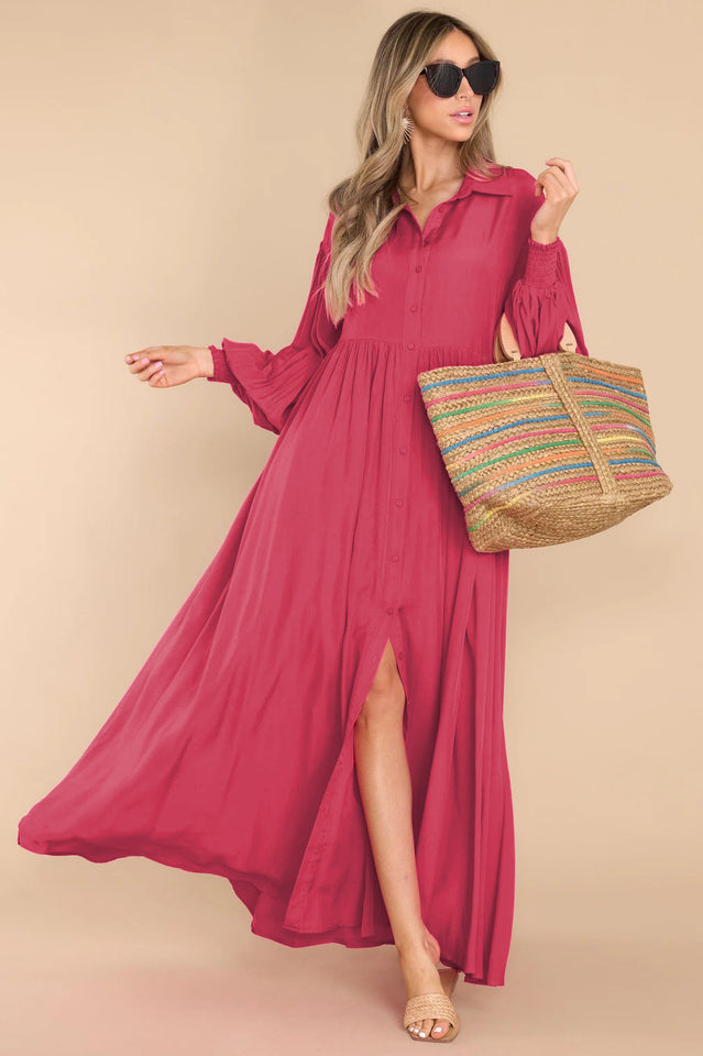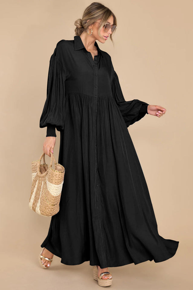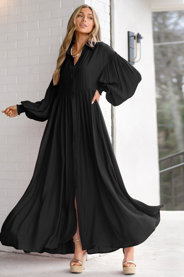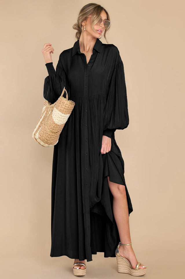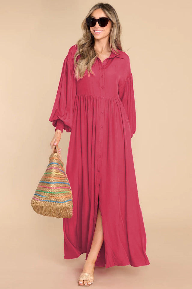 Take my advice and Run Towards Love in this sweet white maxi! Just like this flowy balloon sleeve dress, there is a perfect amount of room for you to enjoy every move of the journey! This maxi dress features a collared neckline, functional buttons down the bodice, balloon sleeves with elastic cuffs, and an oversized flowy fit.