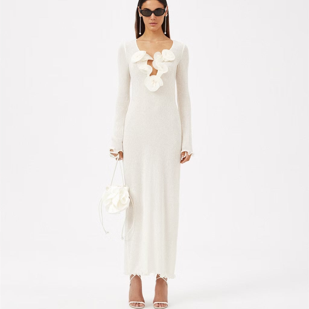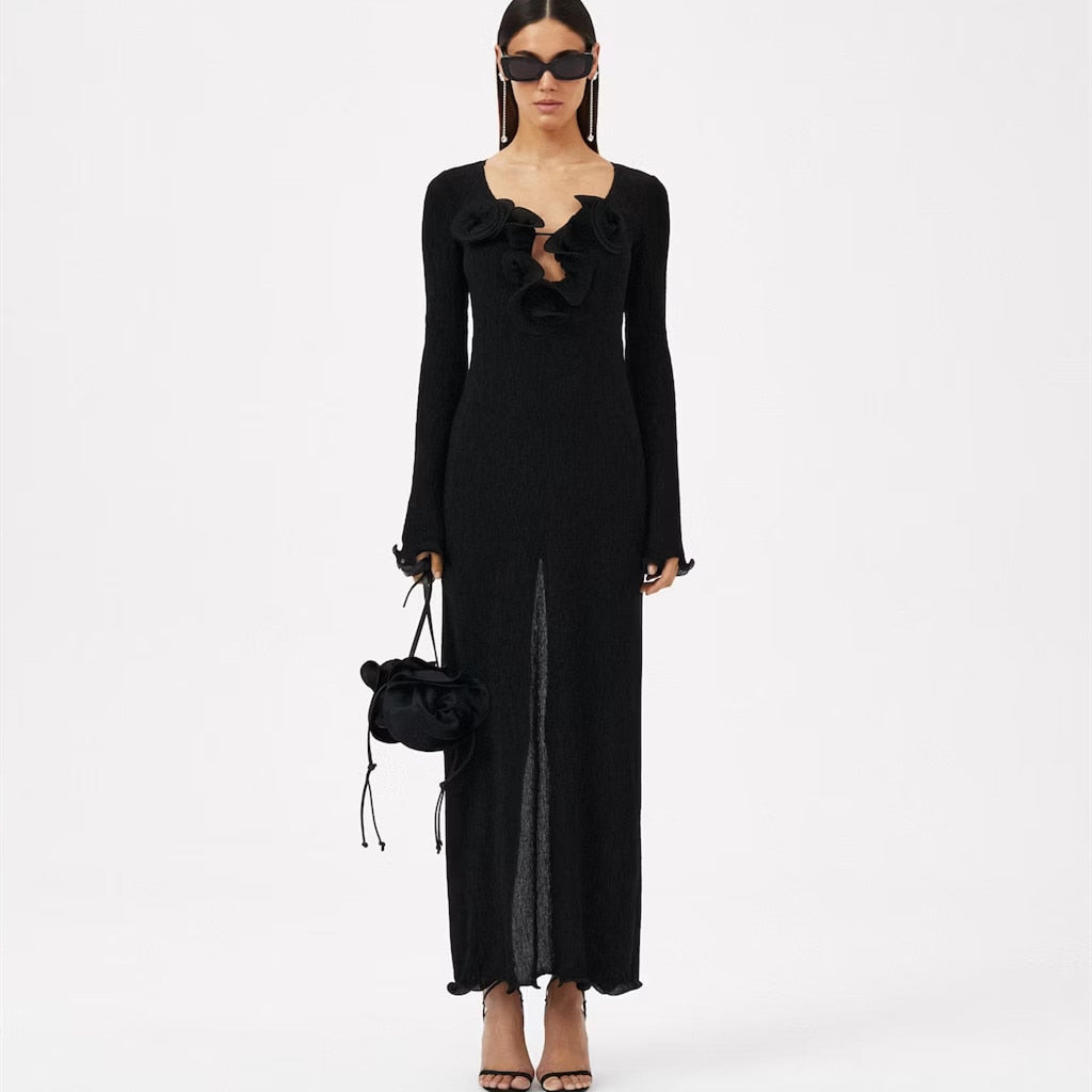 SAKURA Mesh Long Sleeve MAXI Dress with Flowers