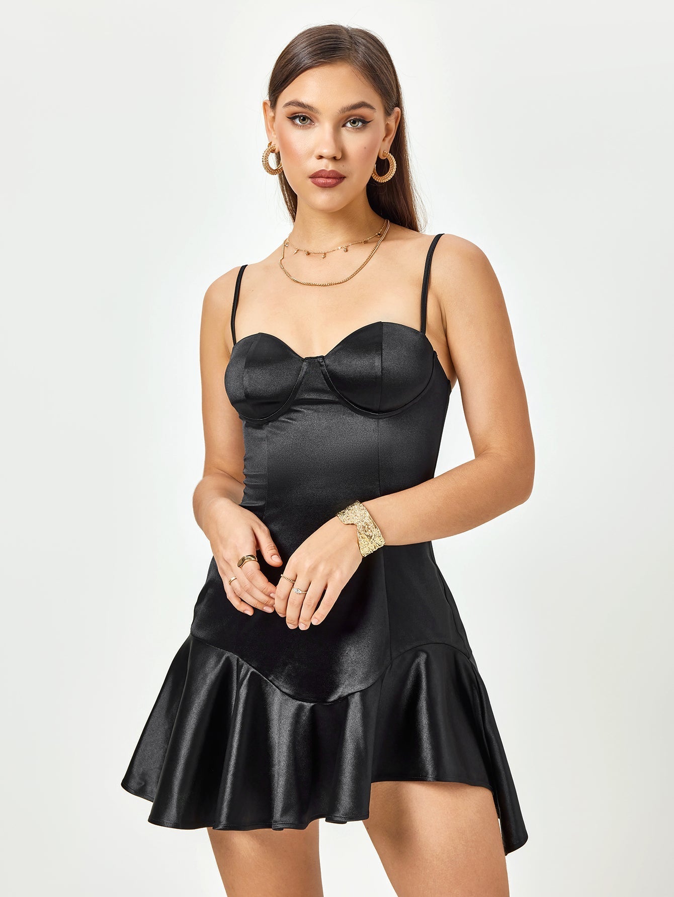 Satin Corset Zipper Asymmetrical Hem Mini Dress