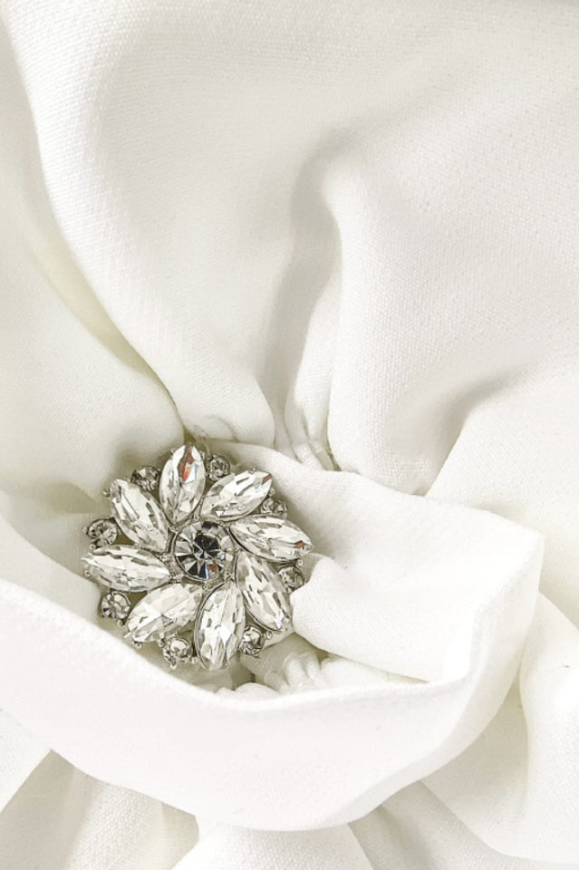 Prepare to captivate all attention in the Solene Off Shoulder Flower Maxi Bandage Dress. This elegant black garment showcases an exquisite off shoulder silhouette and a tasteful back slit. The focal point is the chest area, adorned with oversized white flowers. Ideal for commanding attention and making a statement at any occasion.