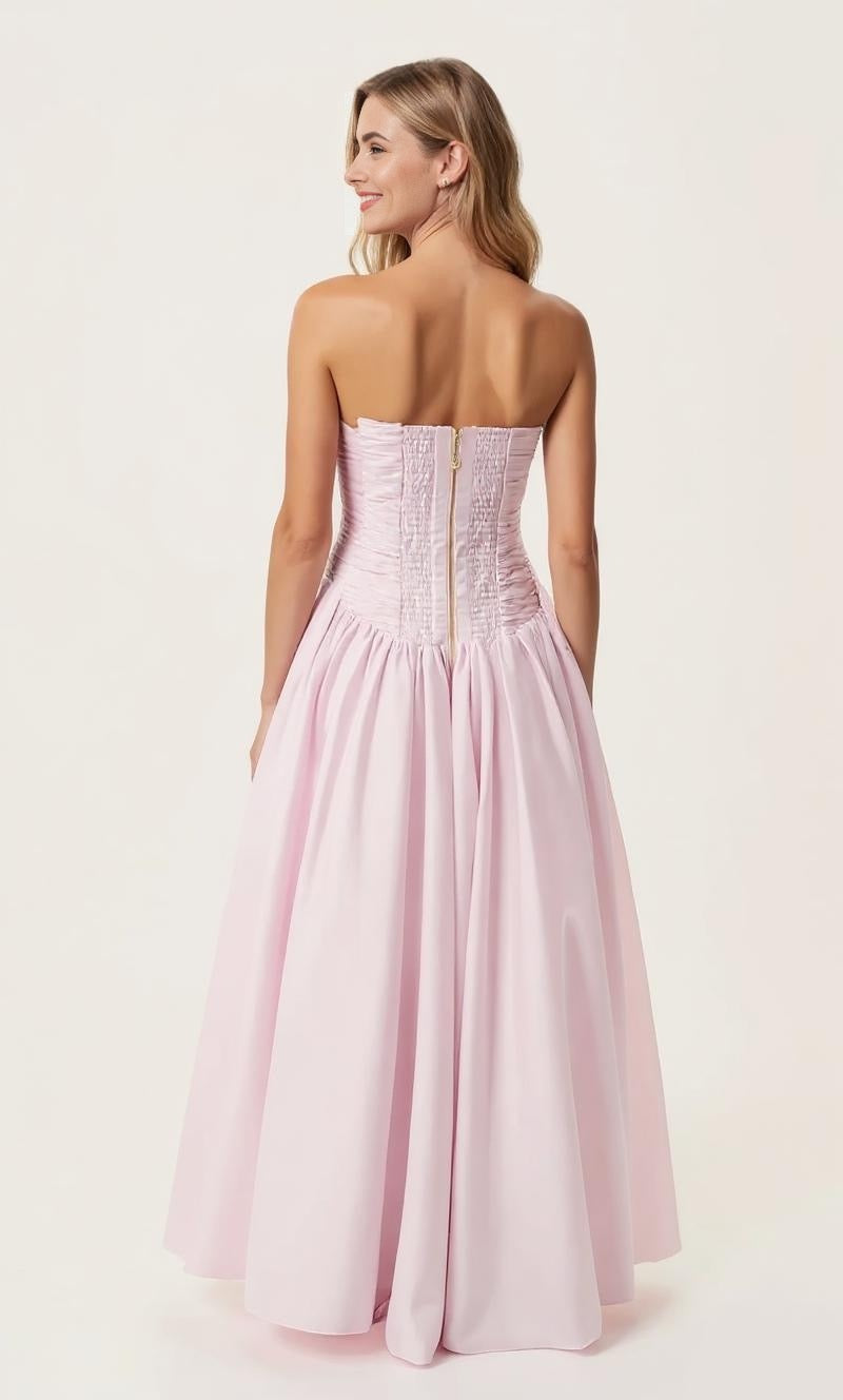 Get ready to turn heads in the Strawberry Sugar Dress! This pink maxi dress features a strapless design and a playful, ballon hem. Perfect for a day out or a special event, add a touch of sweetness to your wardrobe with this quirky and fun dress!