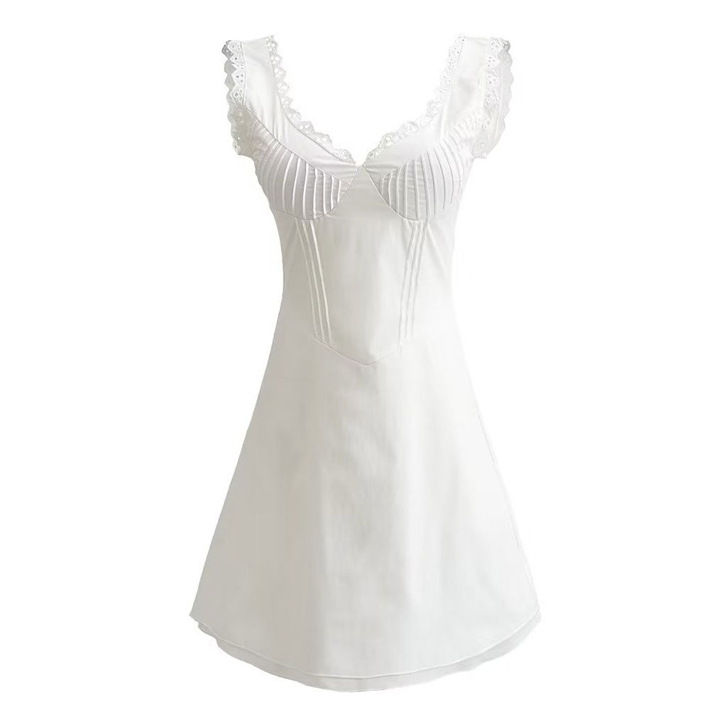 Sweet Scalloped Suspender Strap V Neck Pin Tucked A Line Mini SunDress