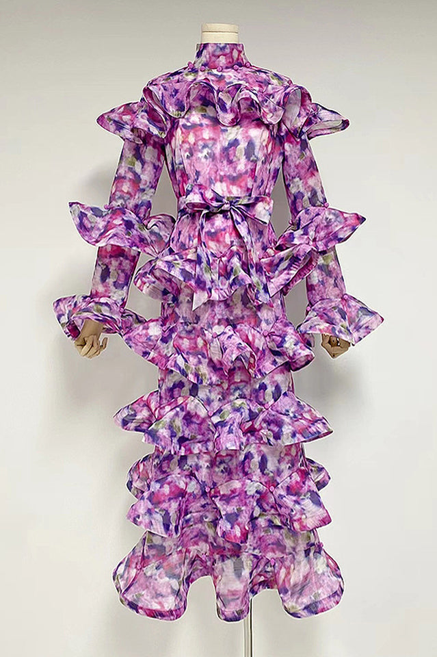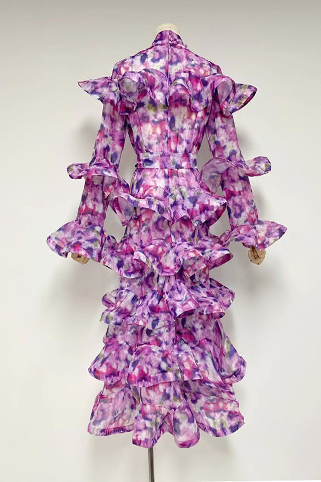 this midi dress is made from silk and linen with crinoline tape that reinforces its ruffled tiers. A truly beautiful piece.