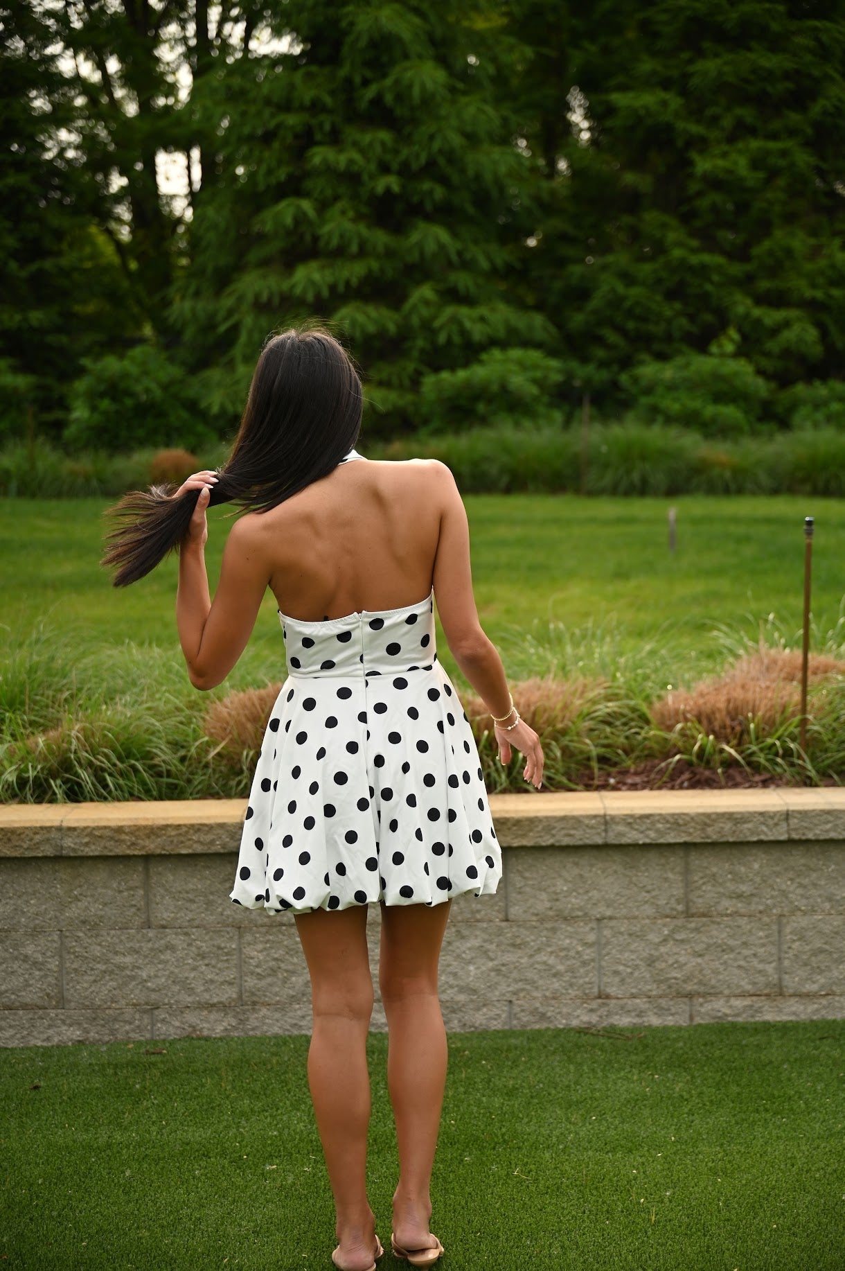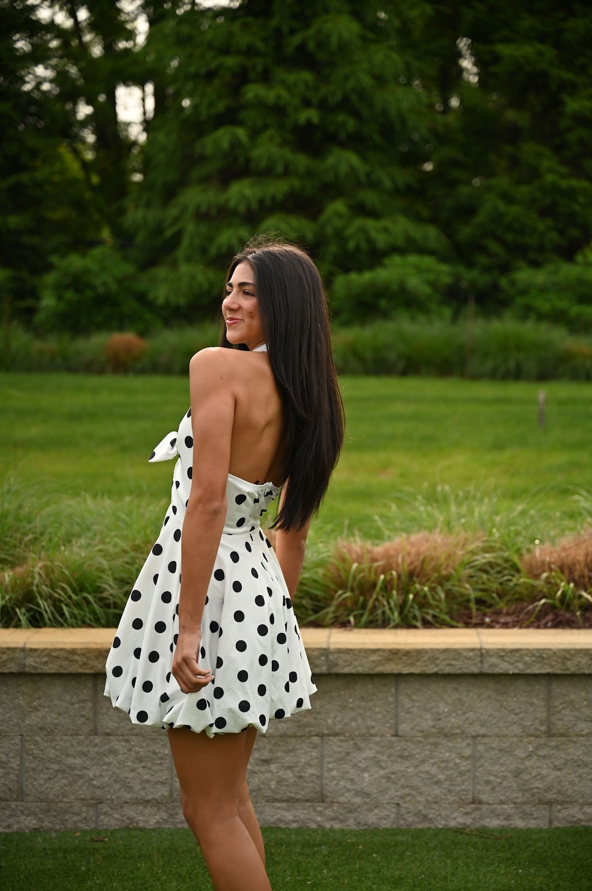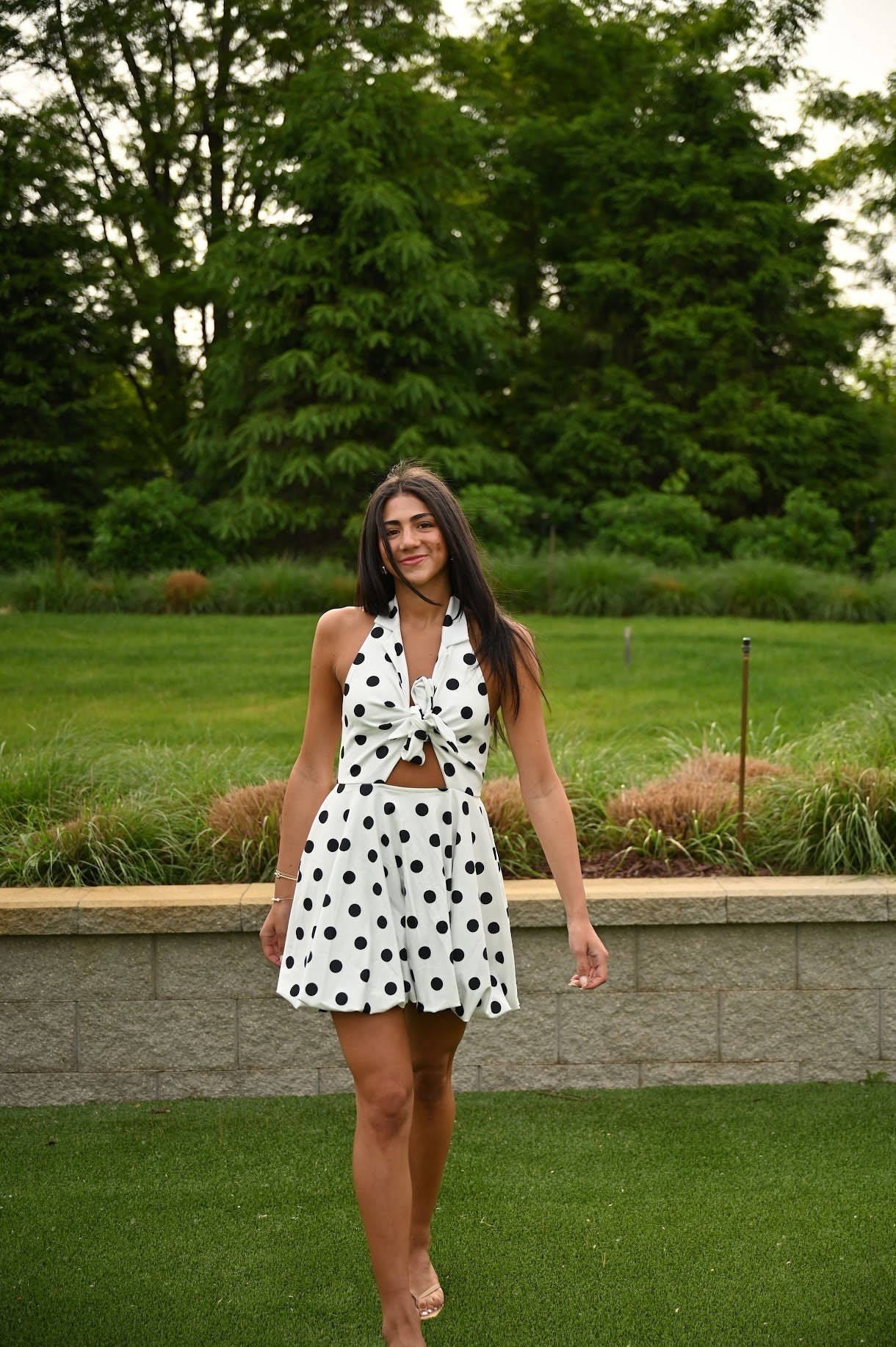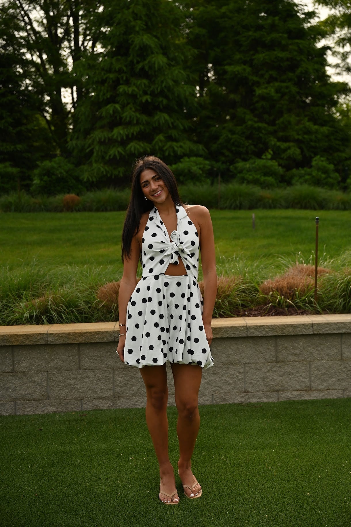 Look stylish and stand out on campus with our University Dress! Featuring playful polkadots, a trendy tie detail, and a flattering bubble hem, this dress is perfect for any occasion. Comfort and style come together in this versatile piece.