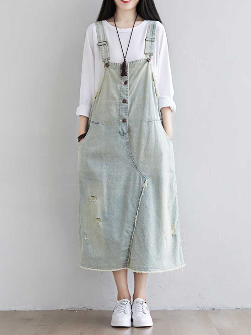 Looking for a ripped and relaxed denim overall dress? The You're Vibe Attract Overall Midi Dress was made for you! This light-blue denim piece is perfect for spring. summer. fall. and winter days. The straps are adjustable so you can create your own look. The ripped and distressed detail gives this dress an extra edge. Whether you're hanging out with friends or hitting the town. this dress is sure to turn heads.