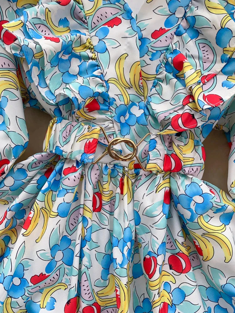 Fall in love with our You Think It's You Mini Dress! Featuring a playful print, this slim fit A-Line dress is adorned with charming ruffle details and a V-Neckline. Embrace a vintage vibe with this above-knee mini dress that will make you feel confident and stylish.