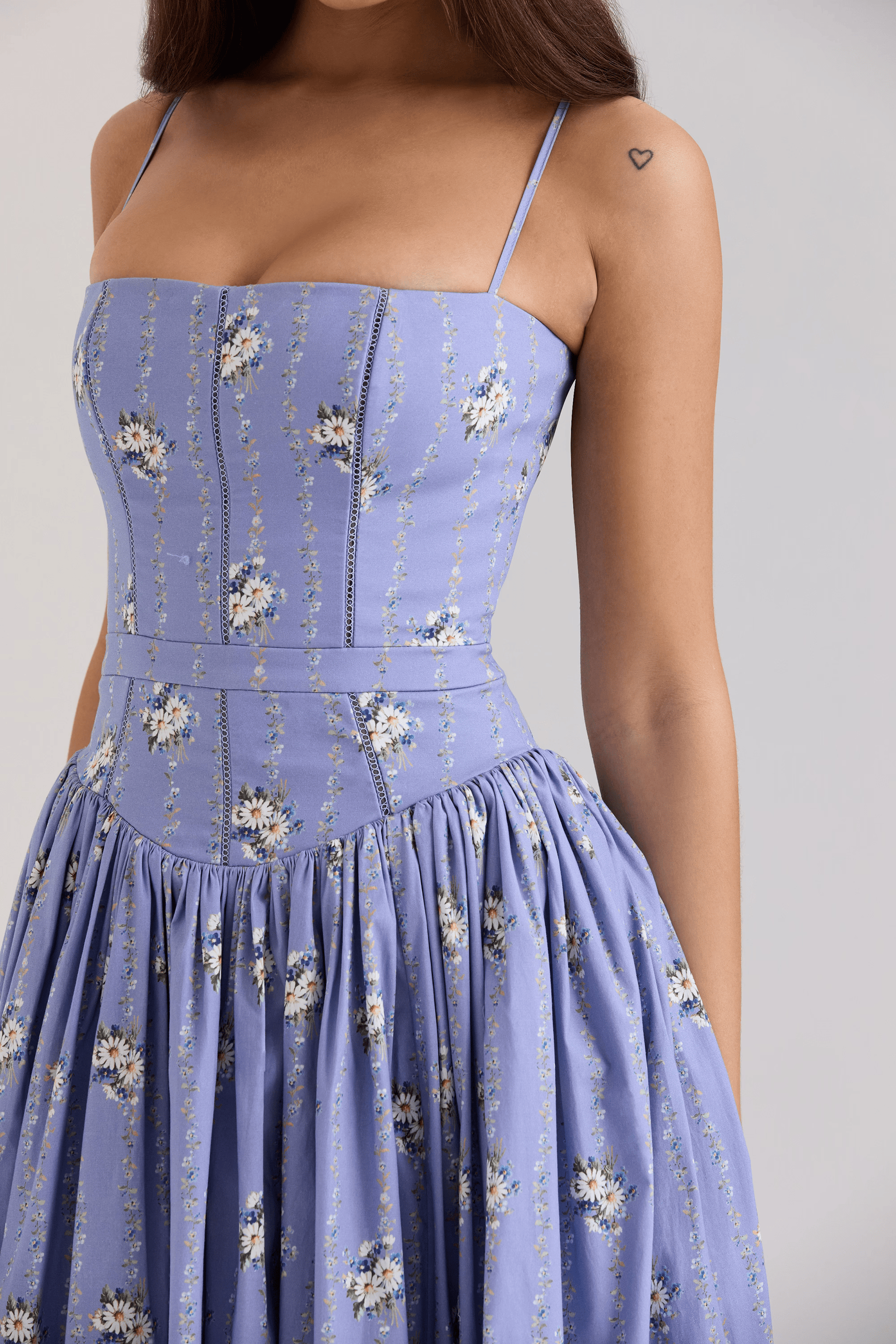 The Daisy Dress combines effortless elegance with a flattering silhouette. Crafted from soft, high-quality fabric, it features a corset-style bodice and a floaty midi skirt. Available in multiple dreamy prints, each version radiates charm for sunlit days or special occasions.