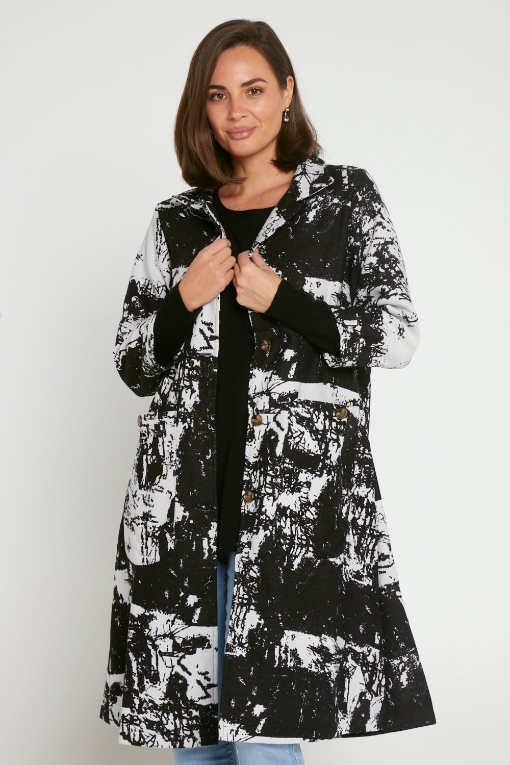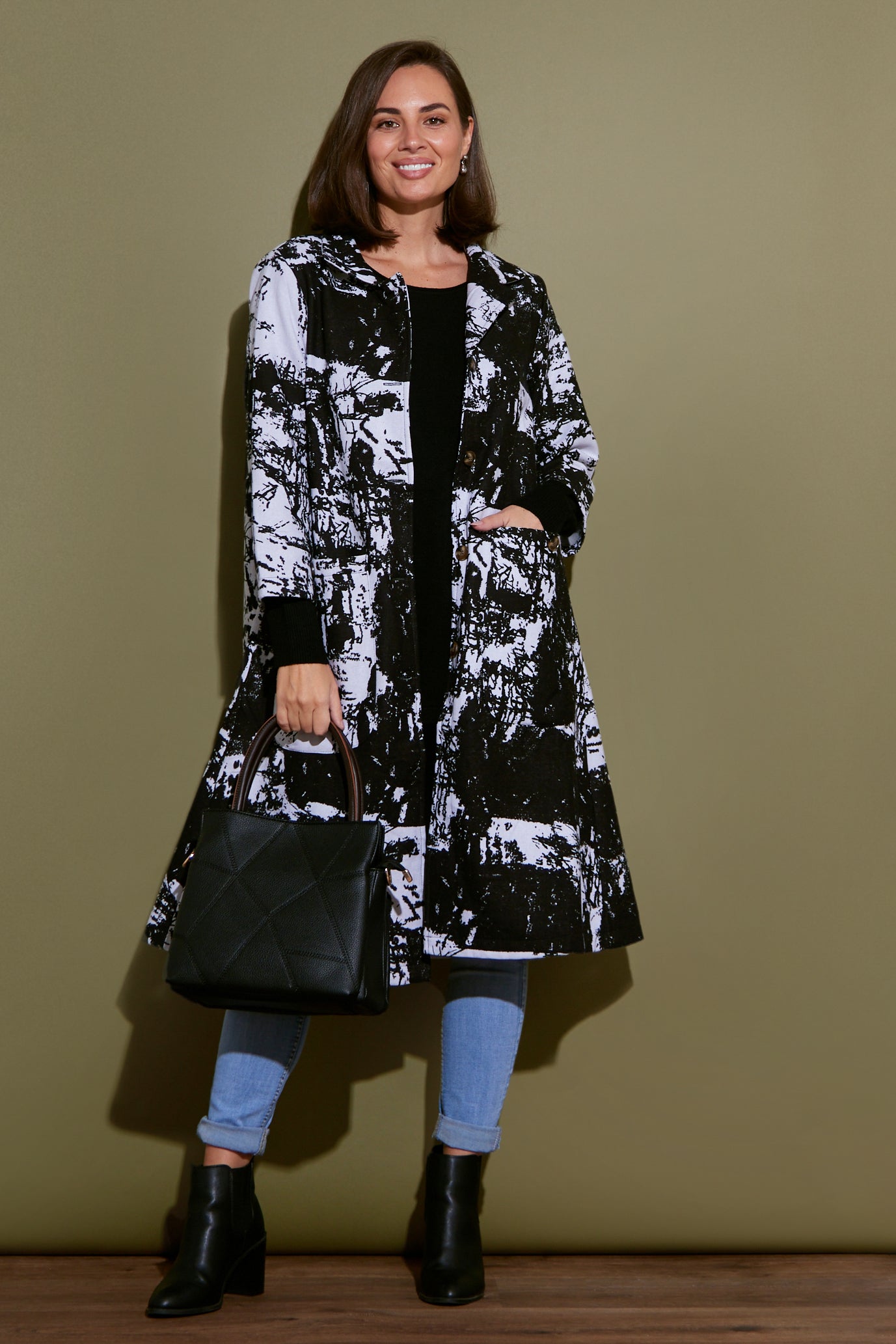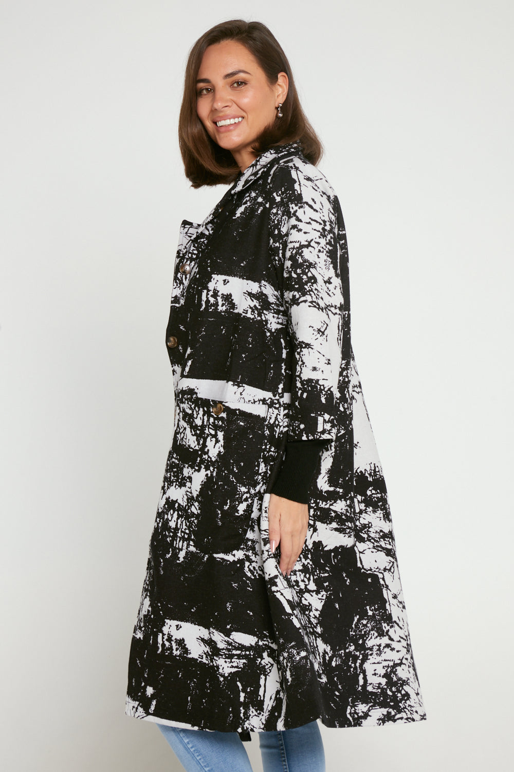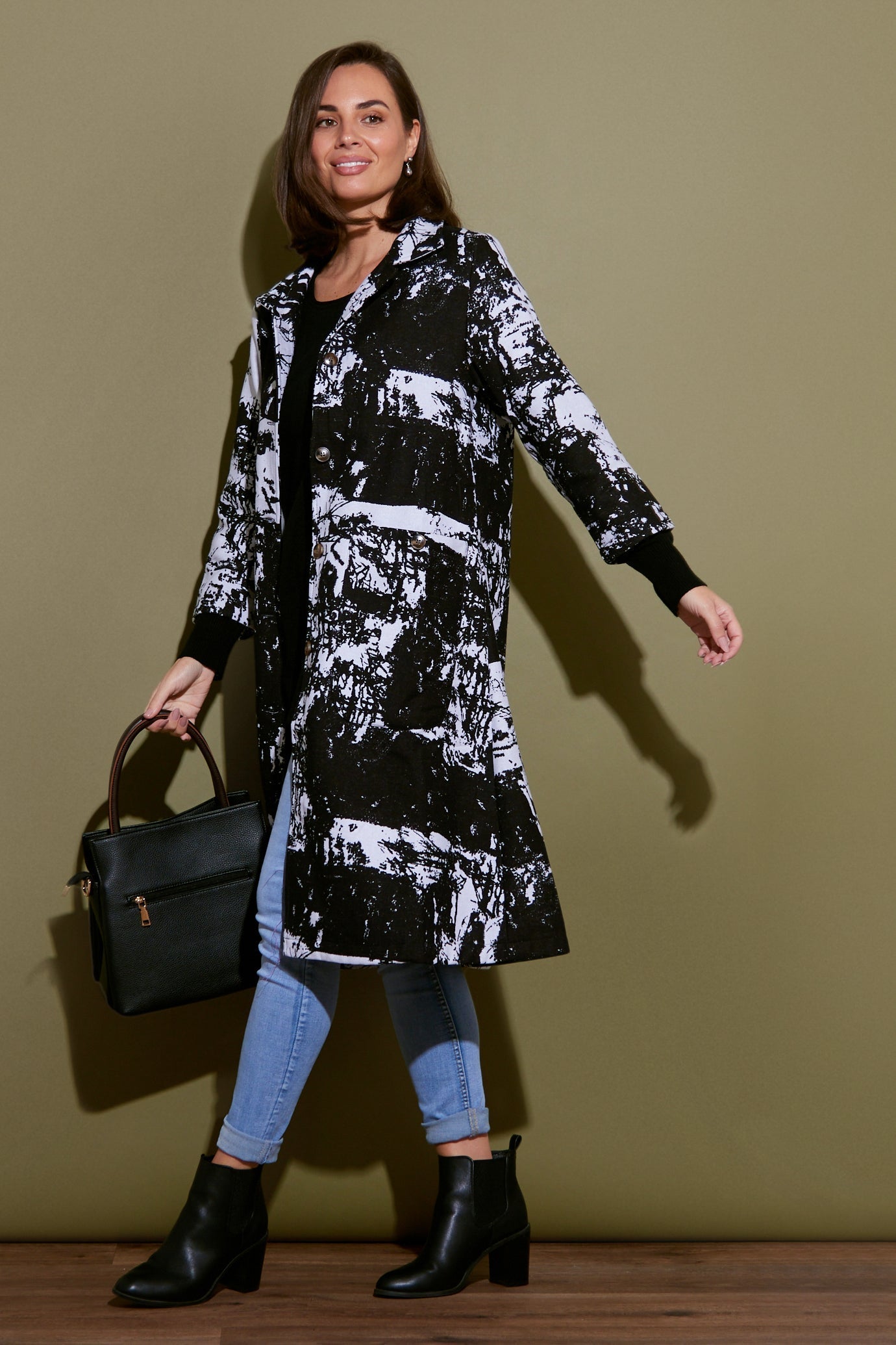 Carlton 3/4 Sleeve Fleece Lined Coat - Black/White Patch