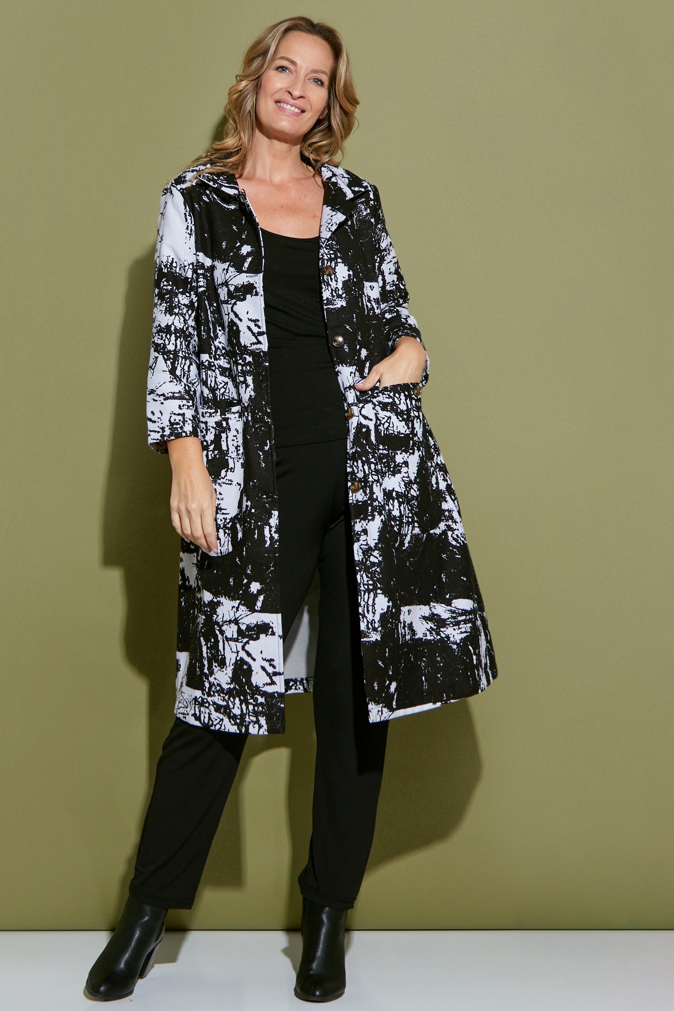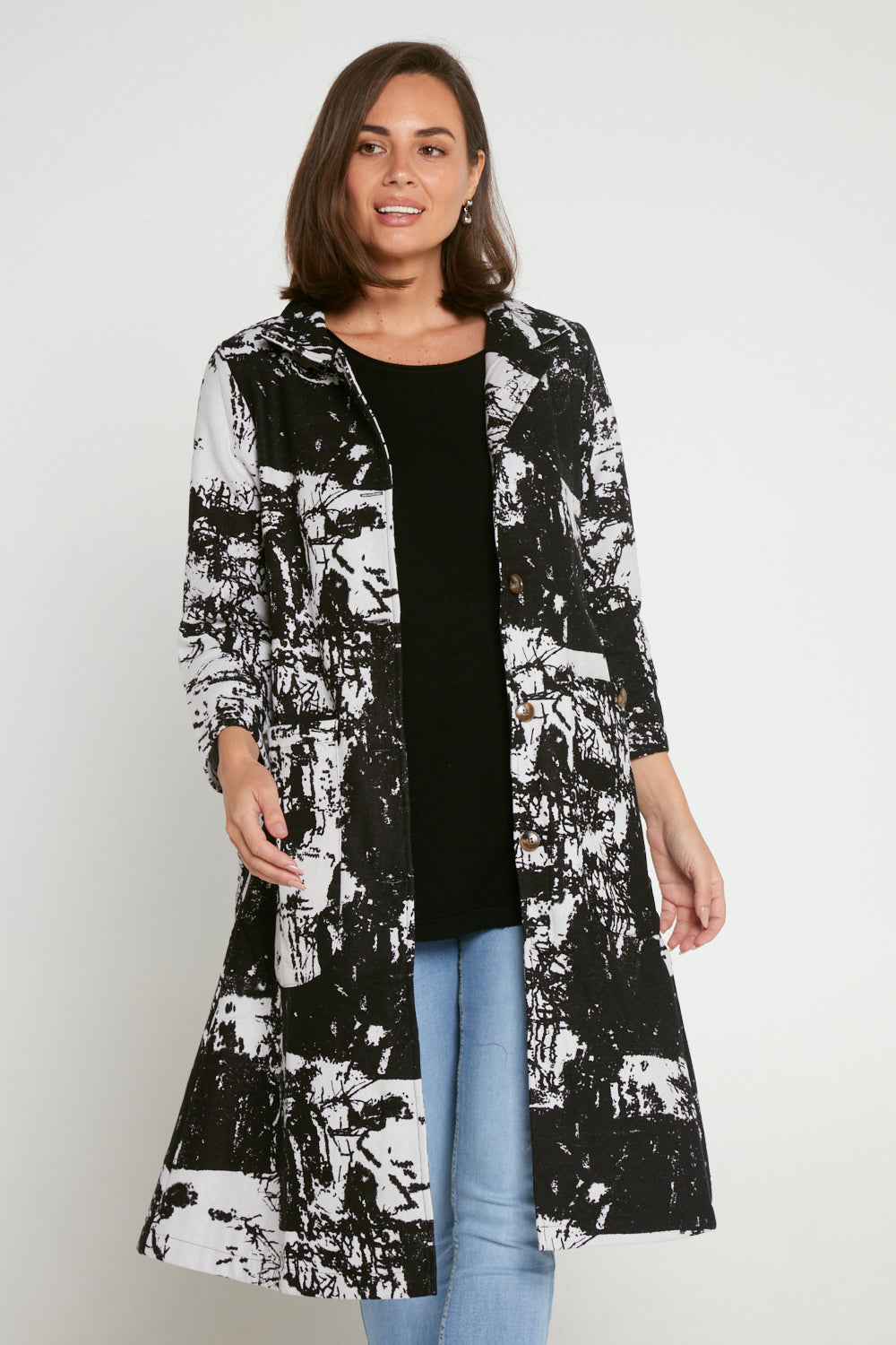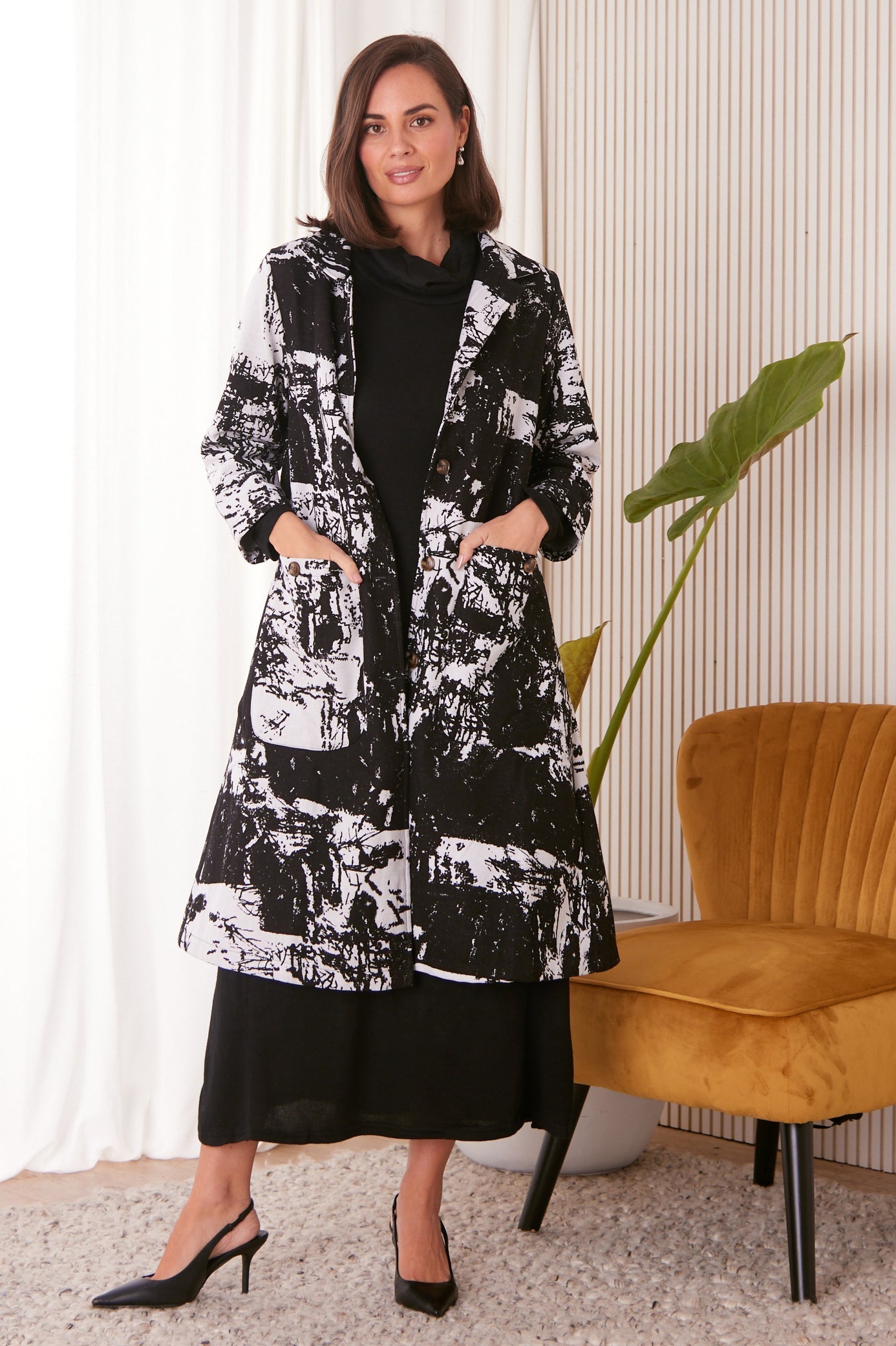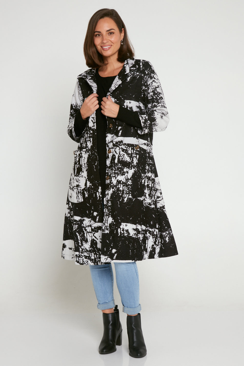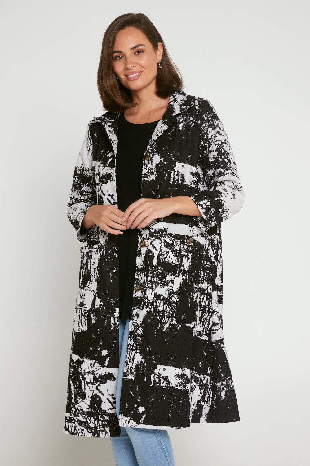 Carlton 3/4 Sleeve Fleece Lined Coat - Black/White Patch