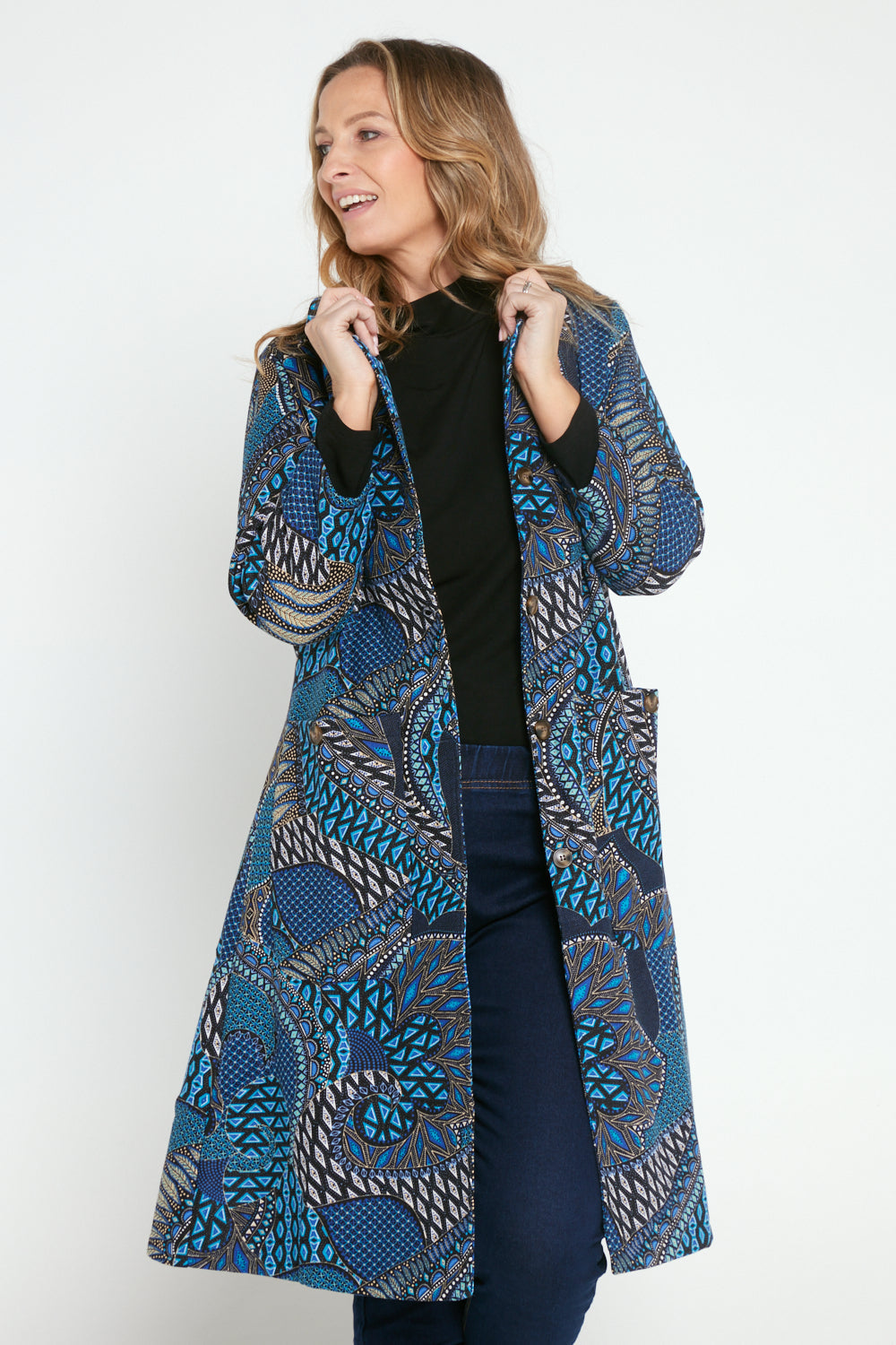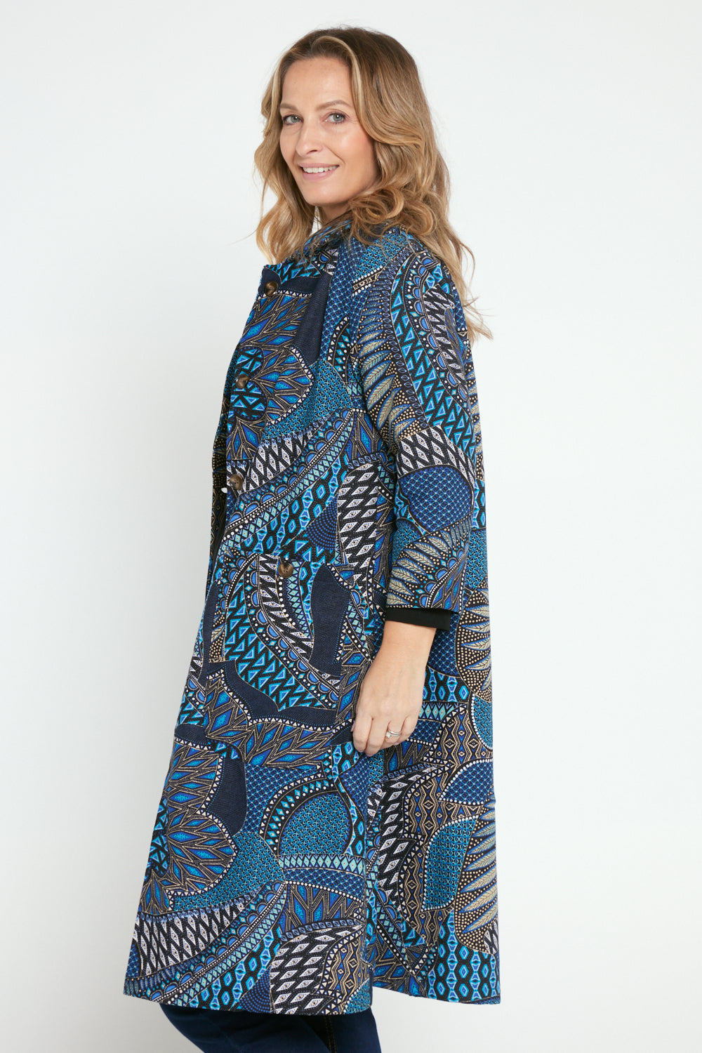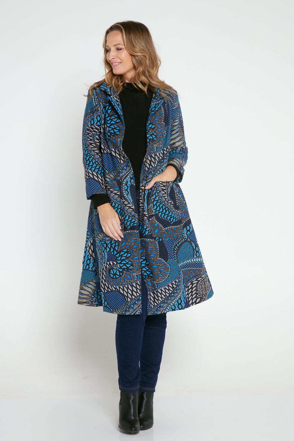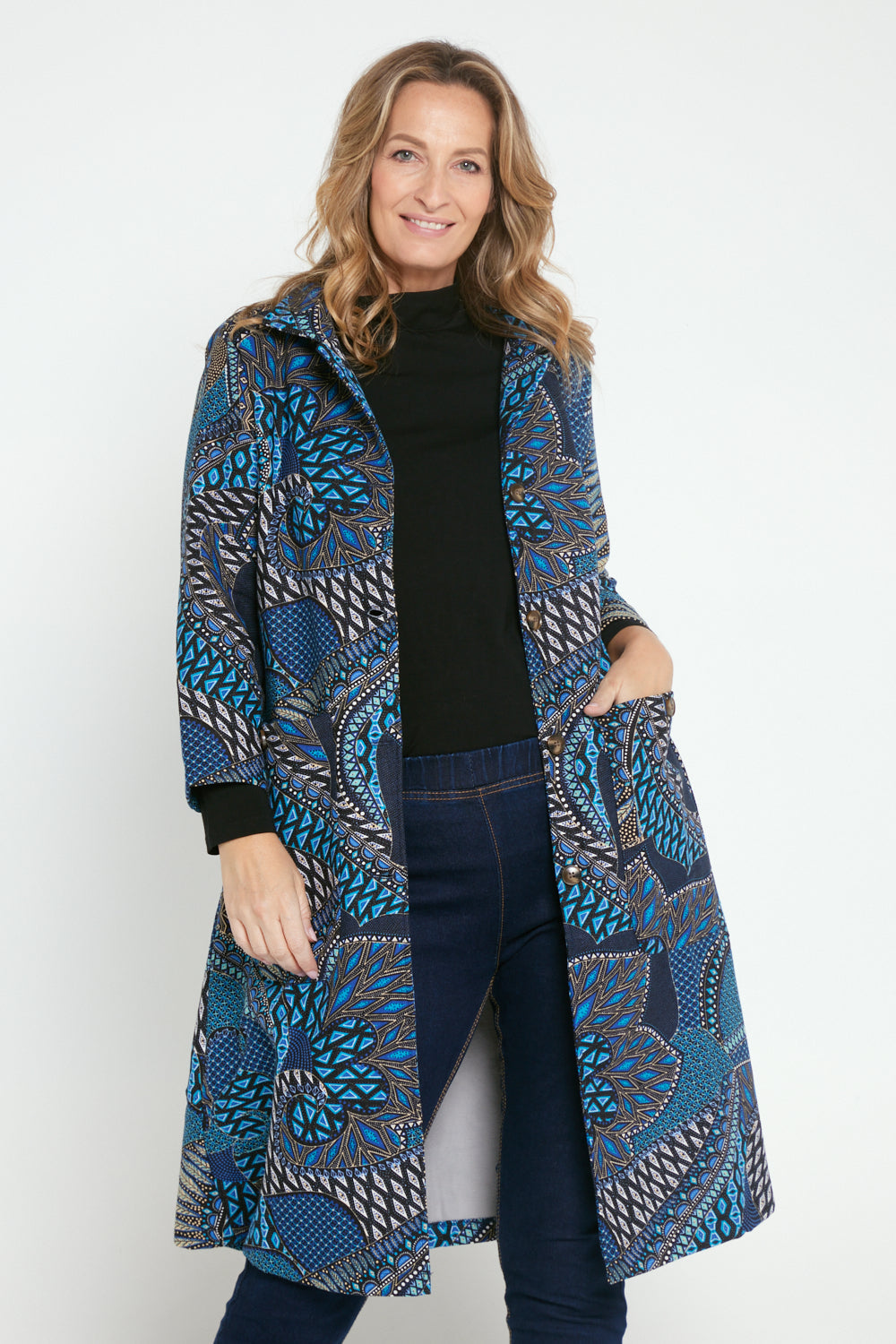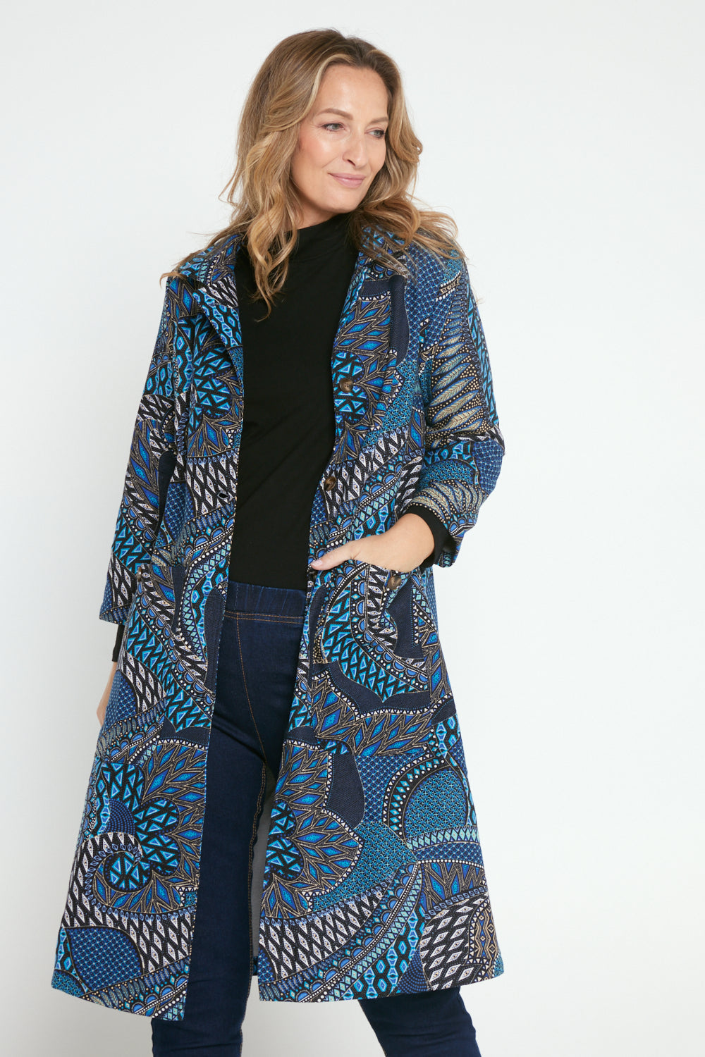 We have all fallen involve with the Lapis Lazuli print this season, and we simply had to be able to wear it for the cooler seasons too. The stunning pattern features an intricate mosaic inspired pattern in exotic shades of blue and light golden yellow, this jacket is simply enchanting.