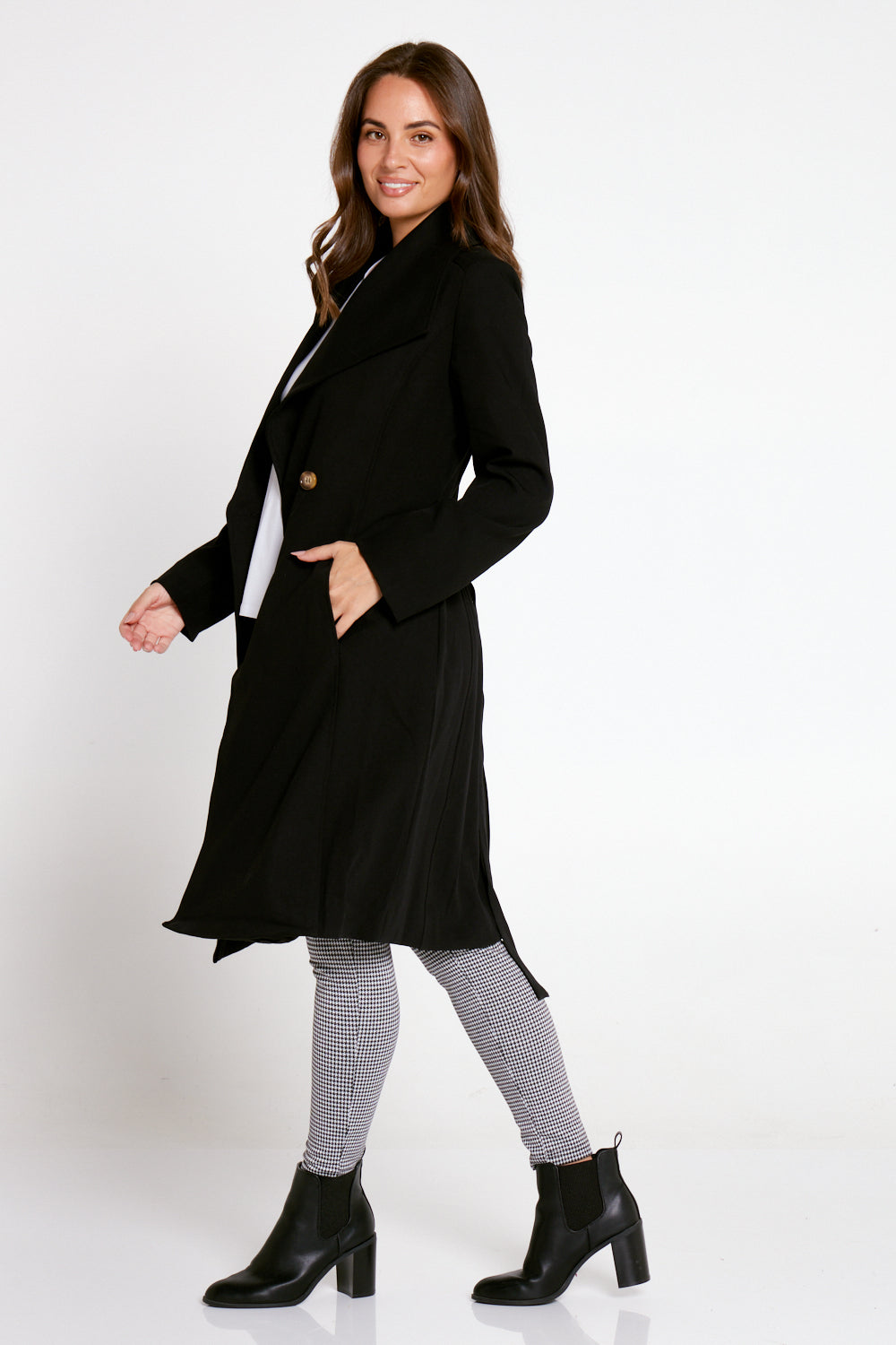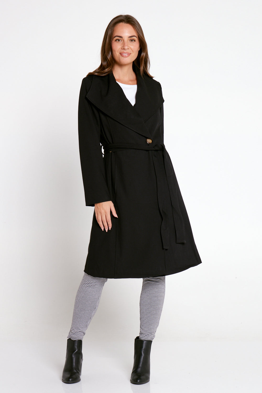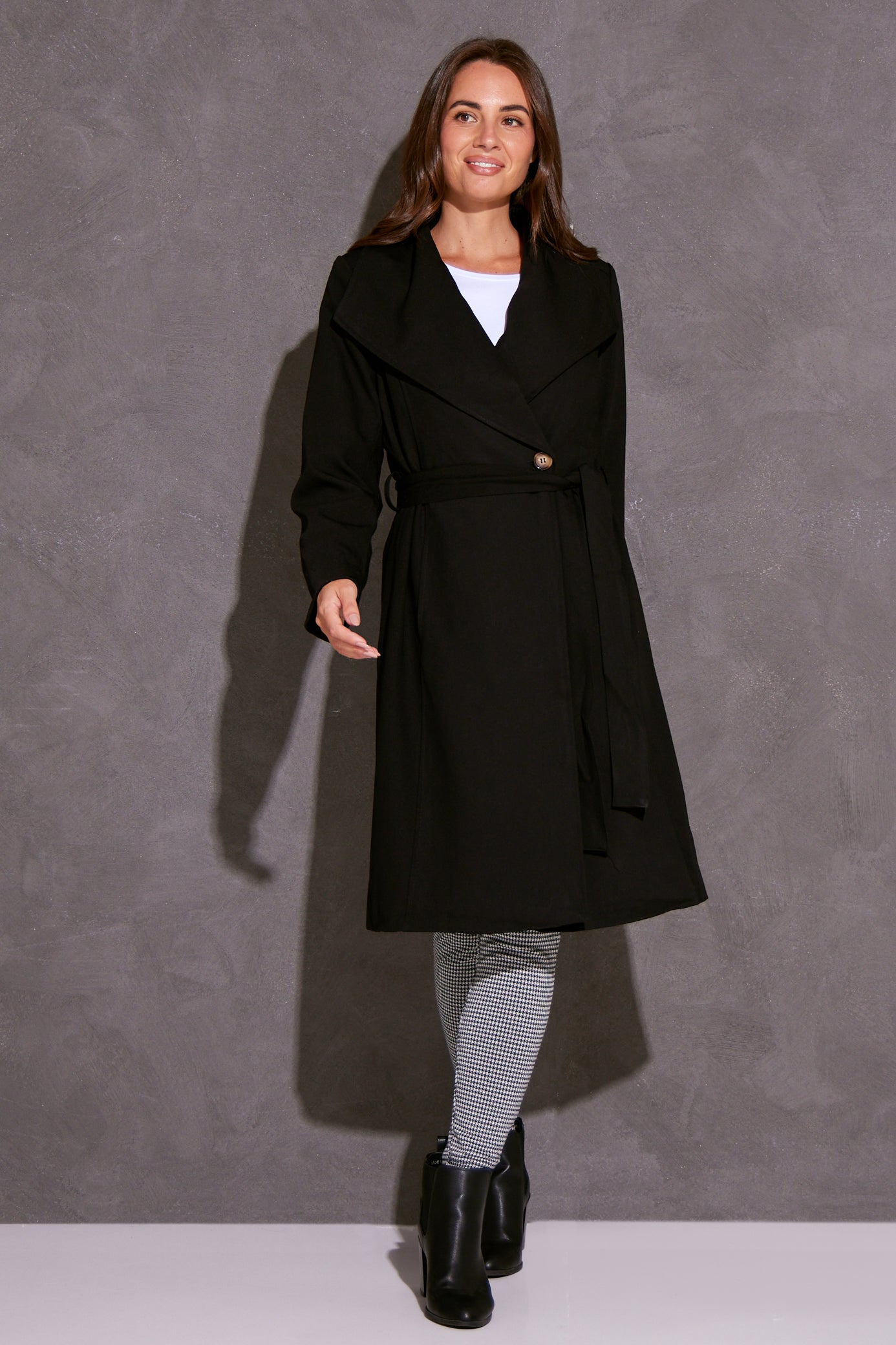 The Christina Wrap Coat - your stylish companion for chilly days! Featuring a collar with a large lapel and a wrap front body, this coat exudes effortless elegance. Use the self-fabric belt to create a tailored, polished look that's as chic as it is cozy. Complete with two front pockets for added convenience, the Christina Wrap Coat combines fashion and functionality seamlessly. Step out in style and embrace the warmth with this must-have winter essential!