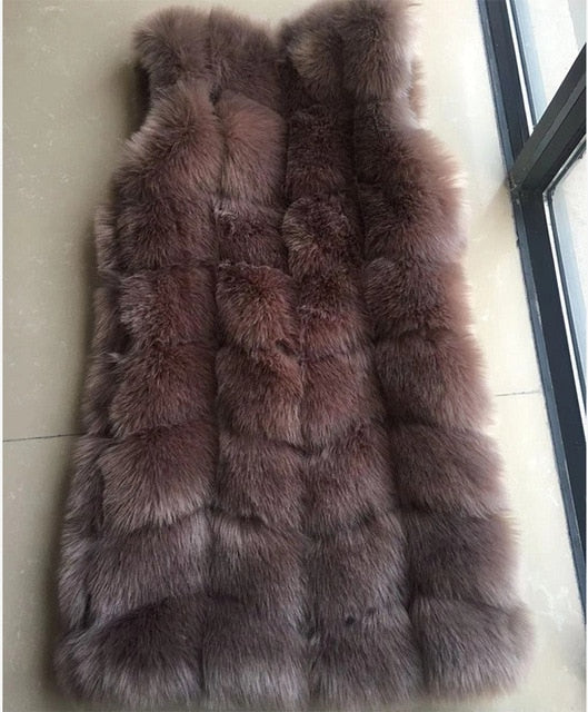 Sleeveless O-Neck Collared Faux Fur Coat with Button Closure