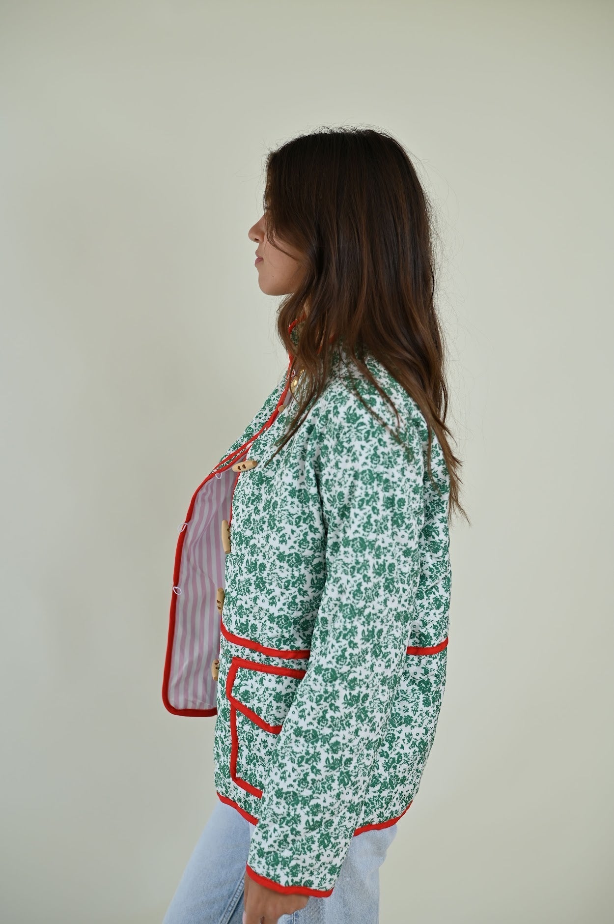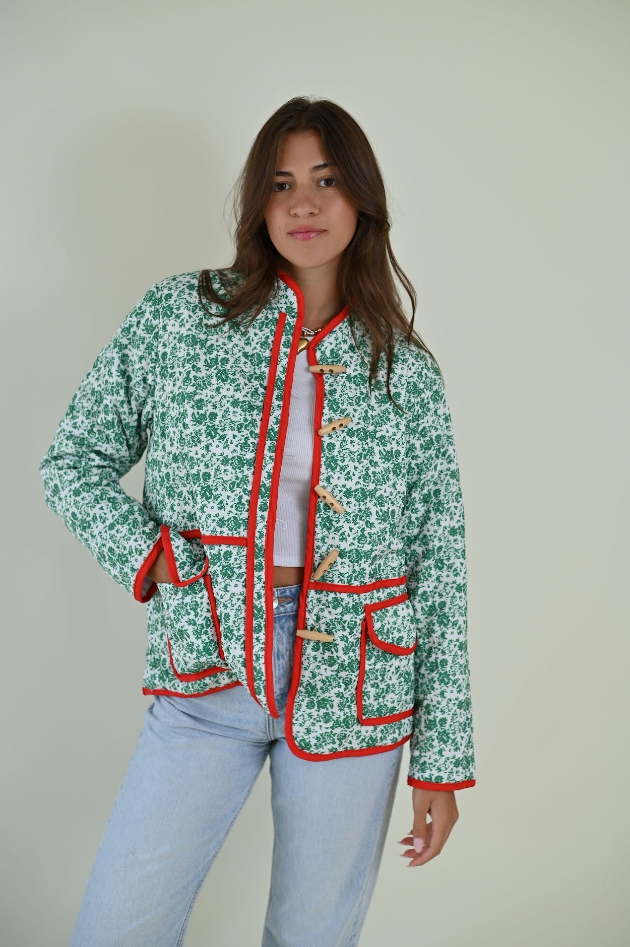 Stay stylishly dry with our new women's autumn and winter retro floral patchwork cotton rain jacket. Perfect for keeping you fashionable and protected from the elements.