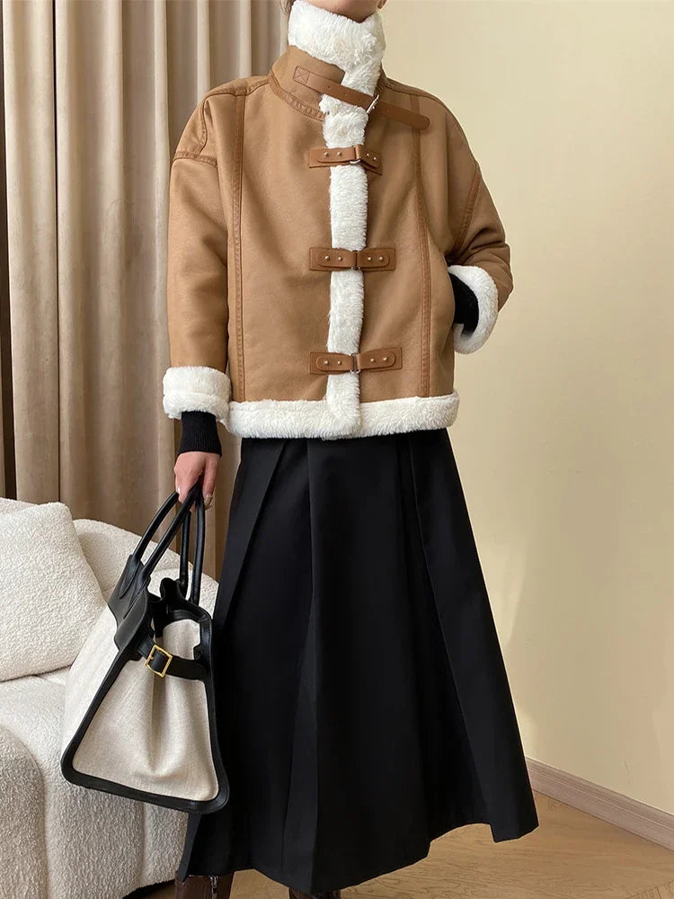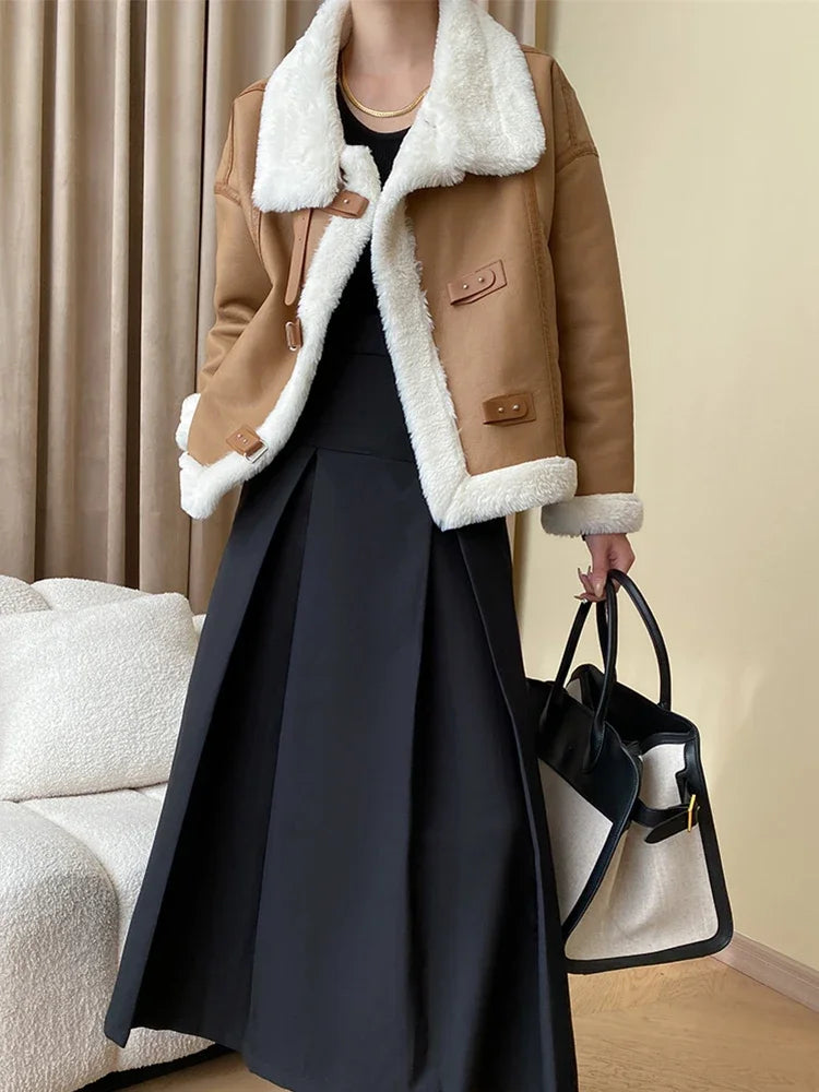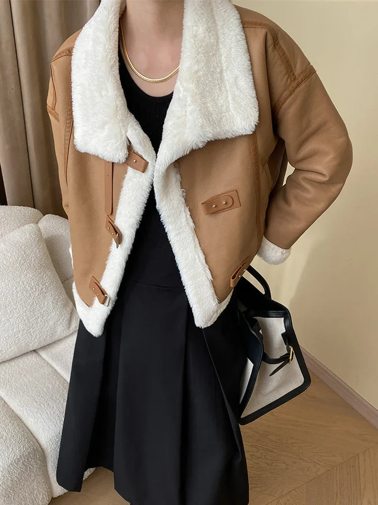 Experience warmth and style with our Shadows in Light Jacket. The thick warm fur and short length provide both comfort and fashion. Designed with a turn-down collar and single breasted closure, this jacket is perfect for chilly days. Upgrade your wardrobe and stay cozy in our must-have jacket!