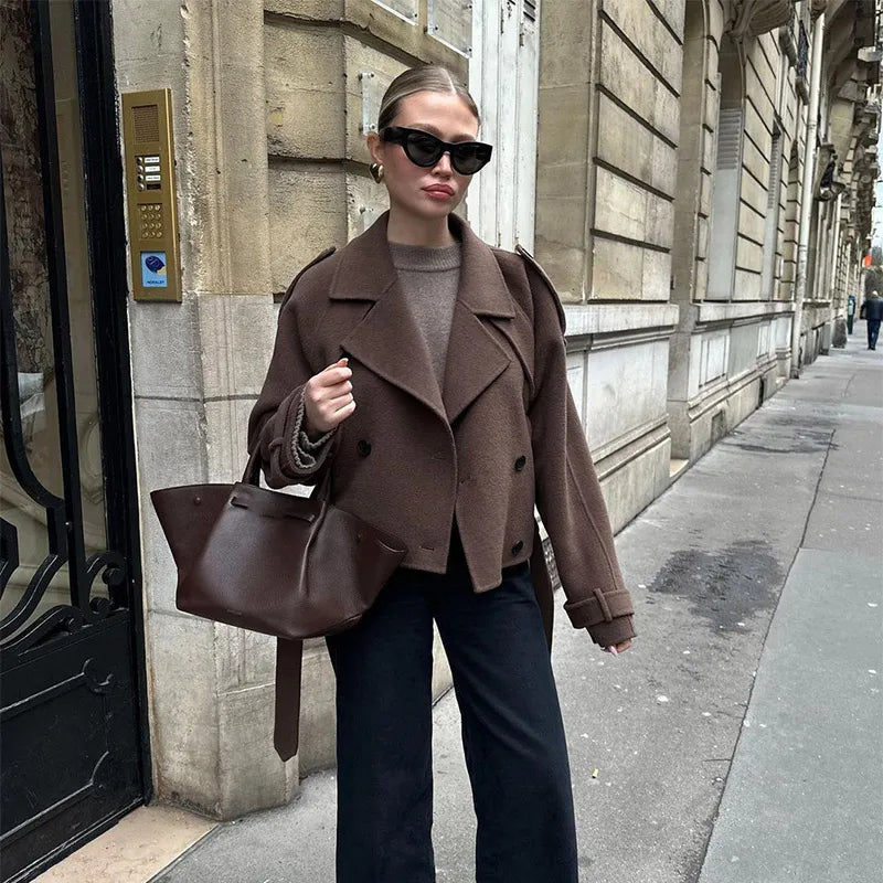 Wrap yourself in the coziness and style of the coat. Made with solid polyester and PU leather accents, this coat is both durable and fashionable. With convenient pockets and a button closure, you'll stay warm and chic all winter.
