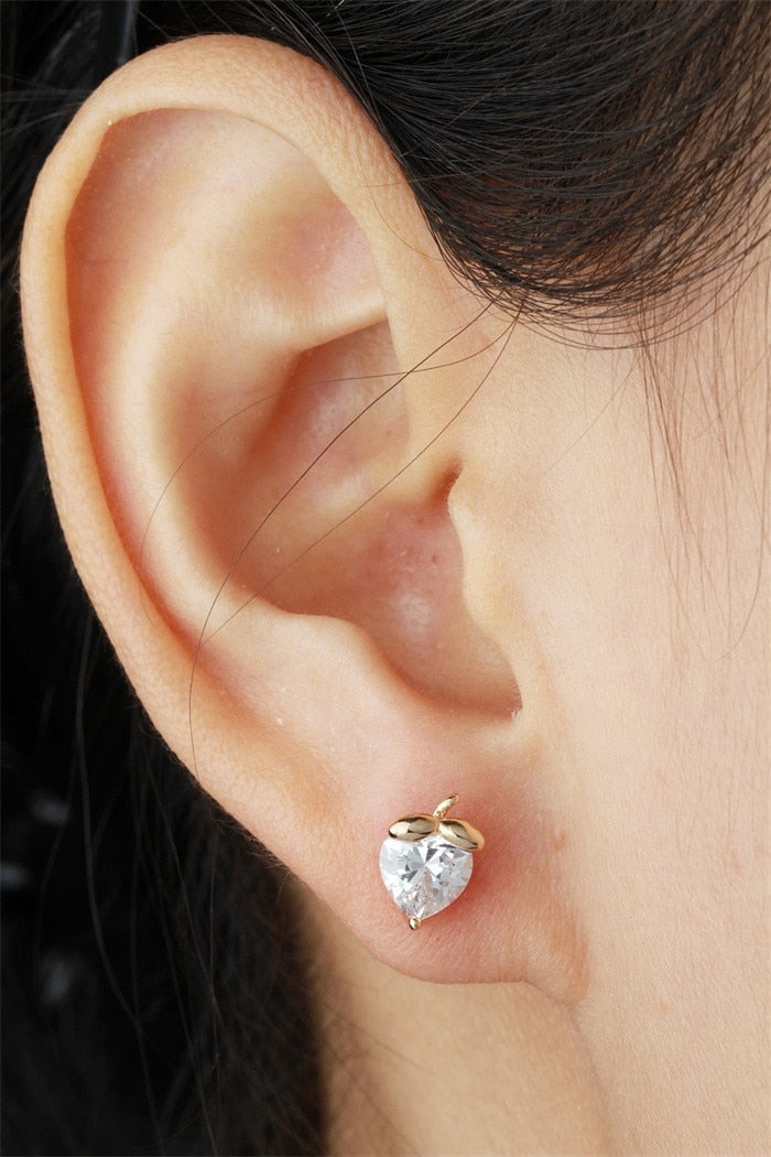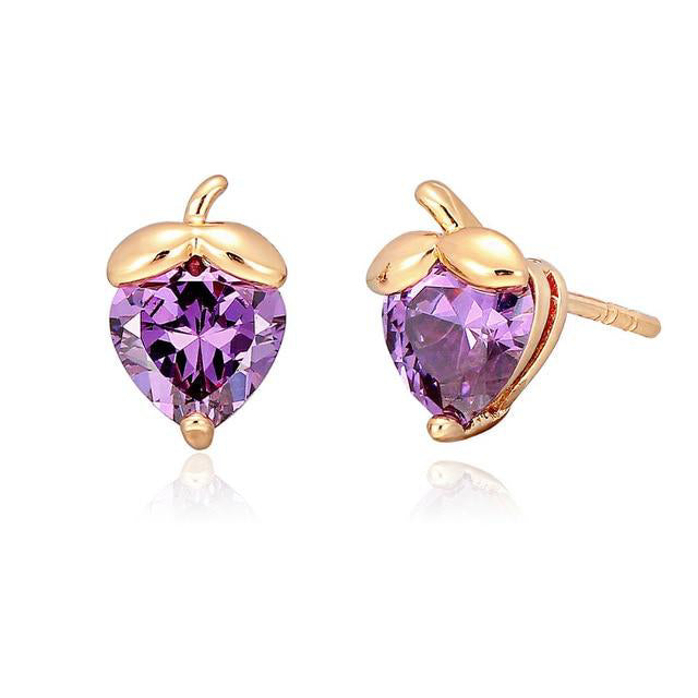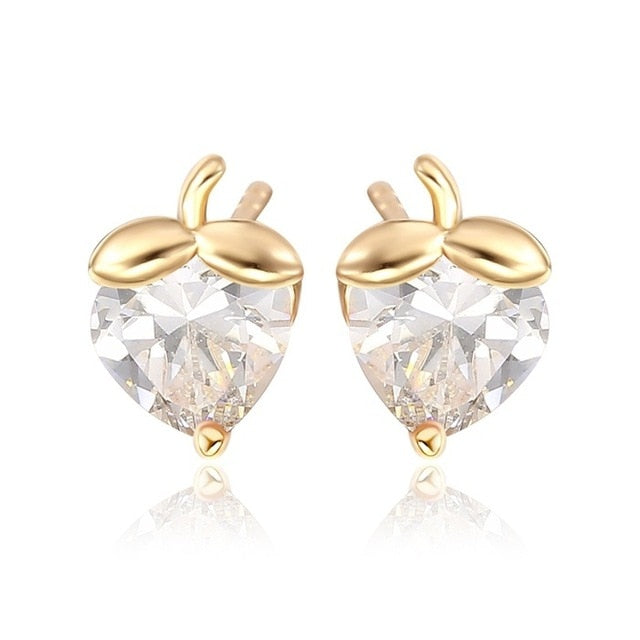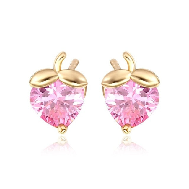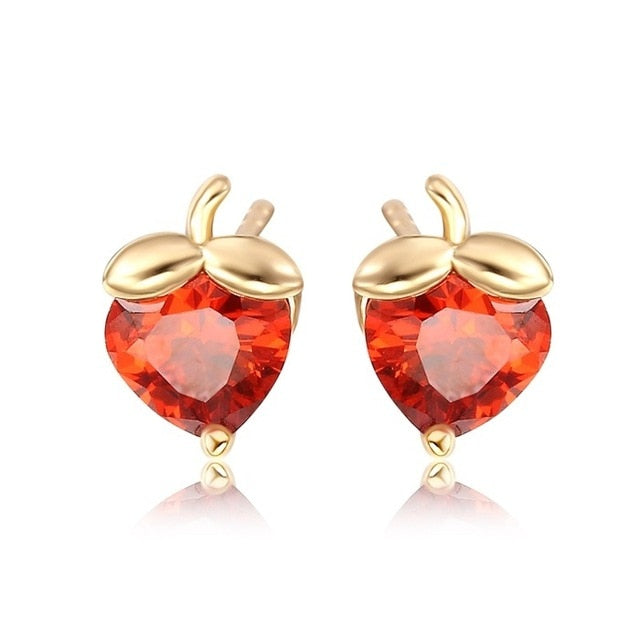 Cute Heart Cut Cubic Zircon Multi Color Strawberry Small Stud Earrings