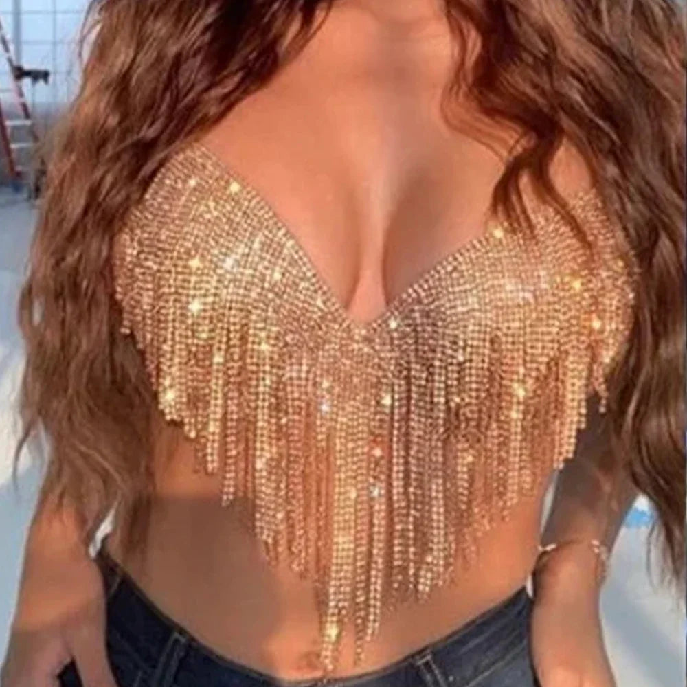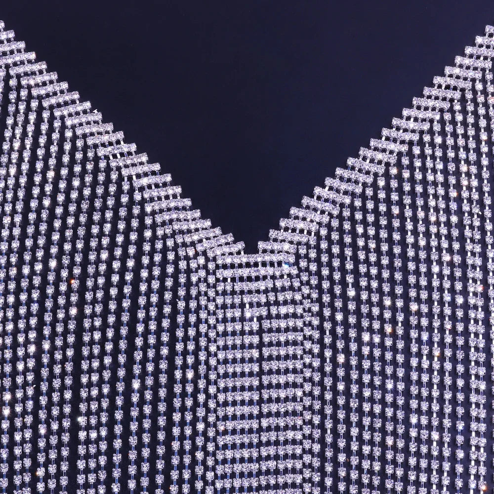 Dance The Night Away with a touch of glimmer and glitz in this sparkling rhinestone body jewelry, perfect for that special night out. Designed with luxury in mind, this exclusive piece exudes elegance and sophistication. Feel glamorous and enjoy the moment with this timeless classic.