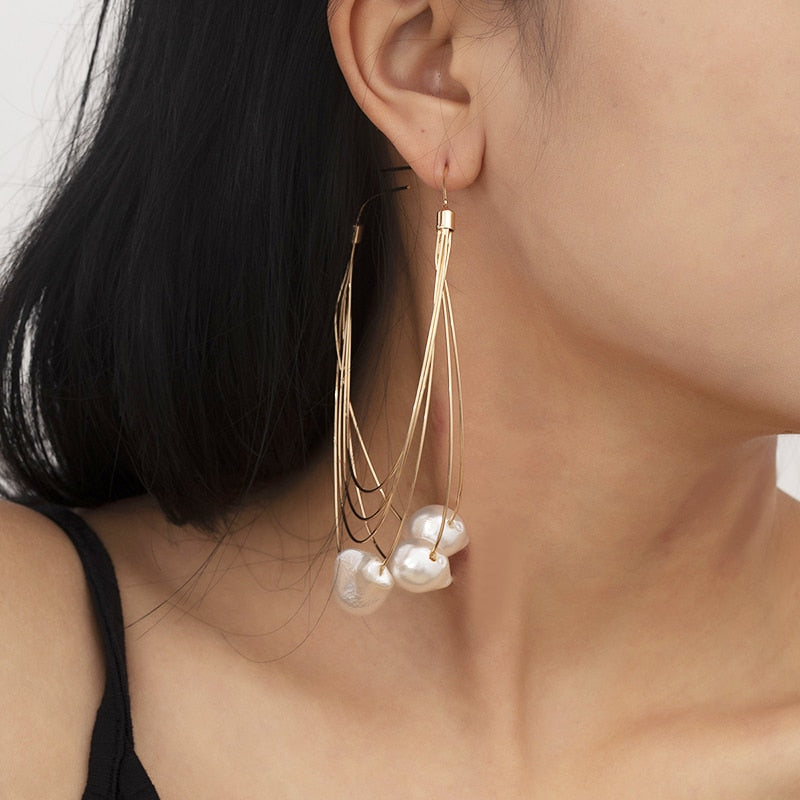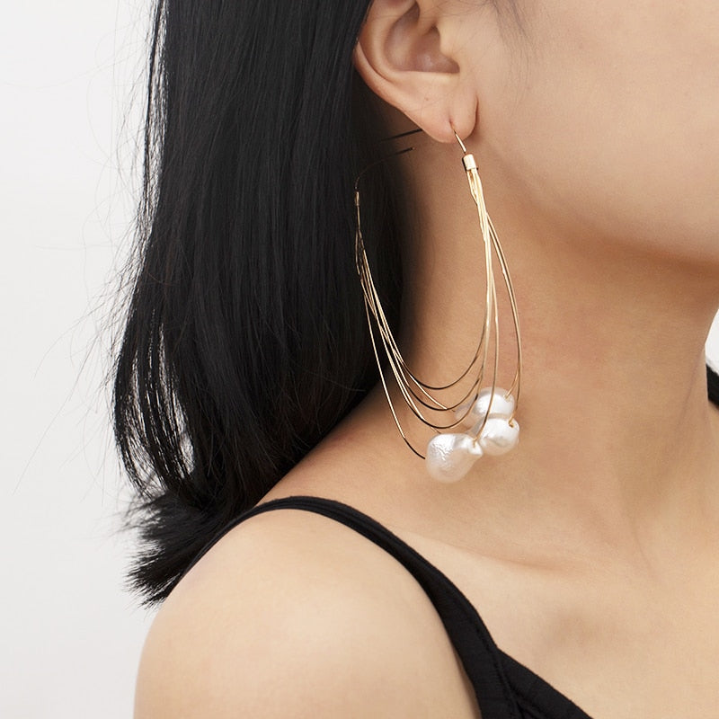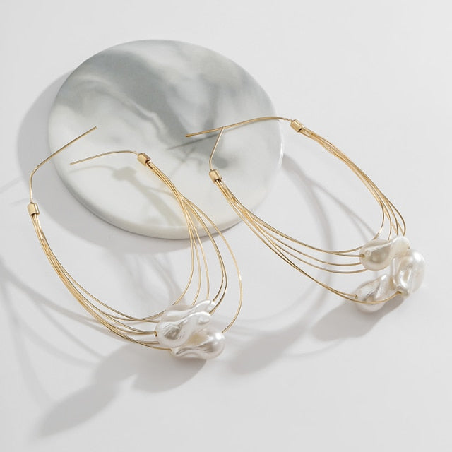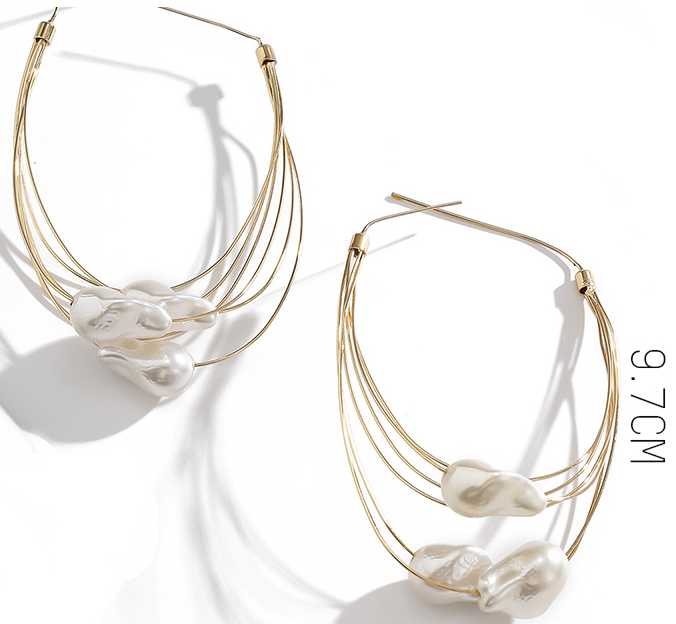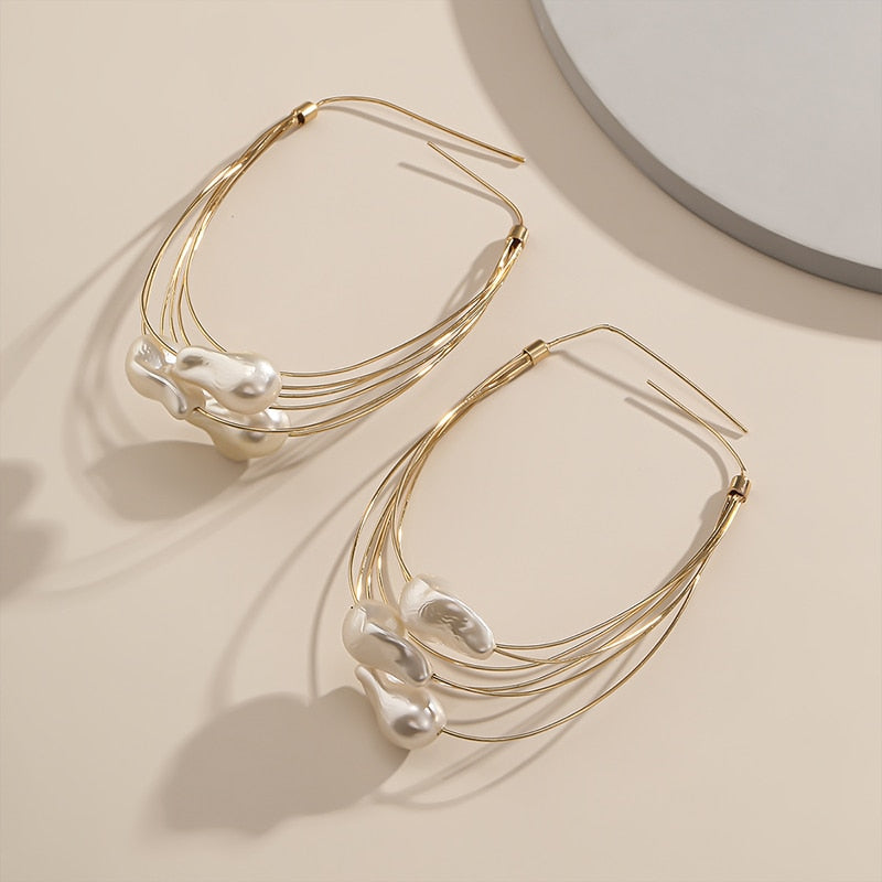 Copper Hoop Earrings with Unique Shaped Imitation Pearls
