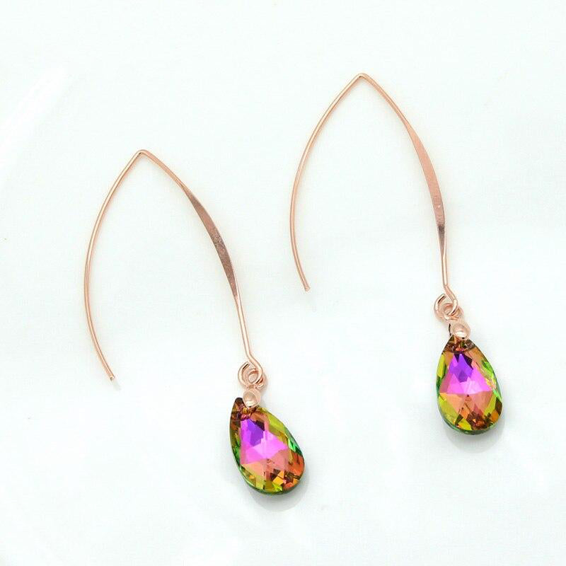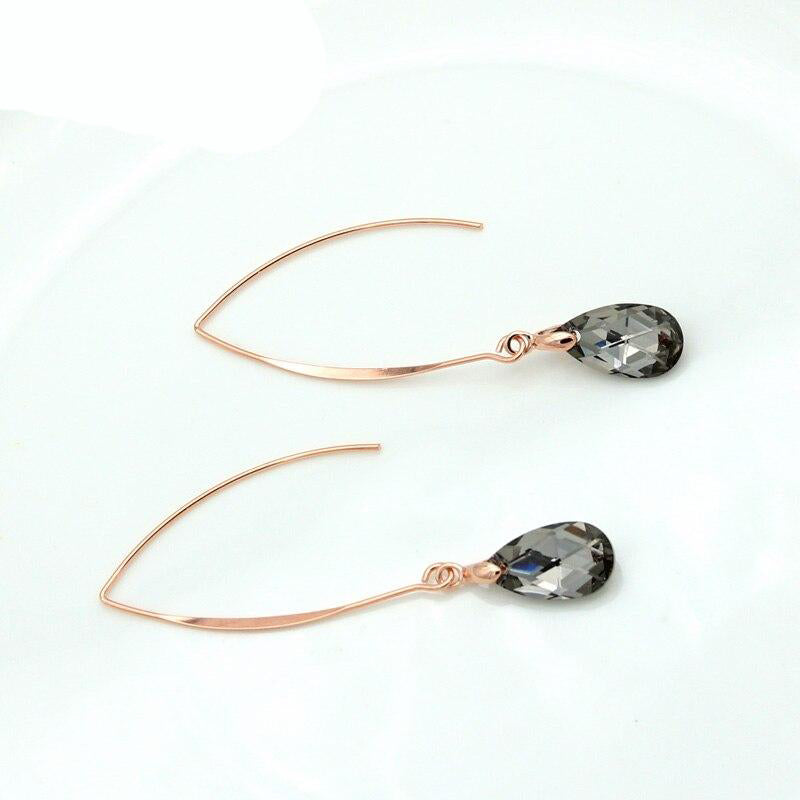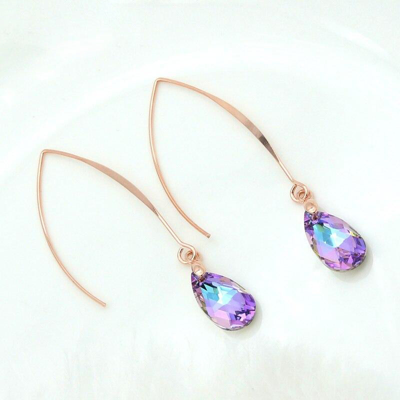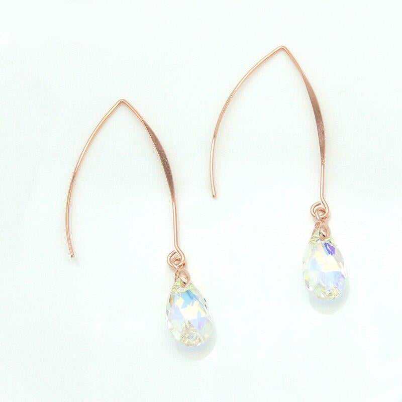 Japanese Rose Gold Imitation Crystal Water Drop Dangle Earrings