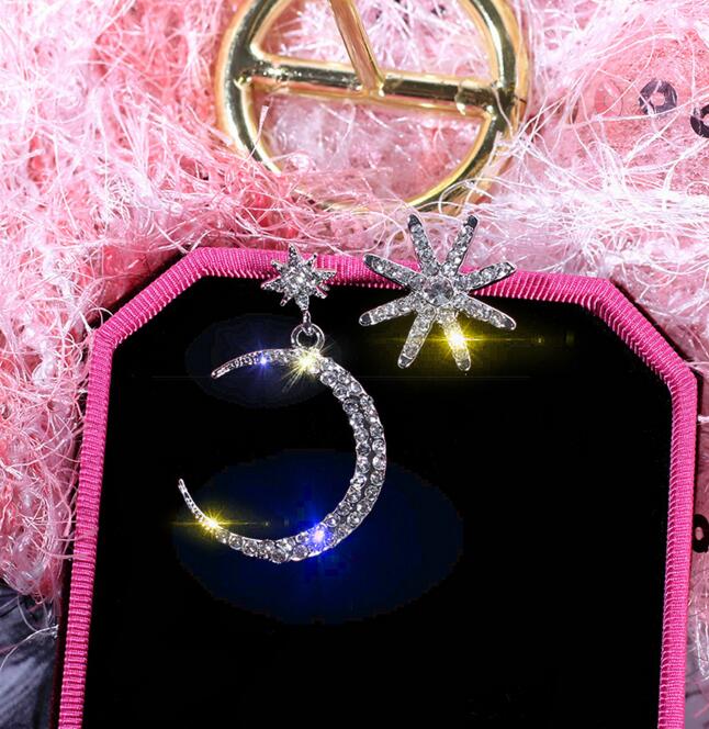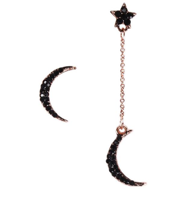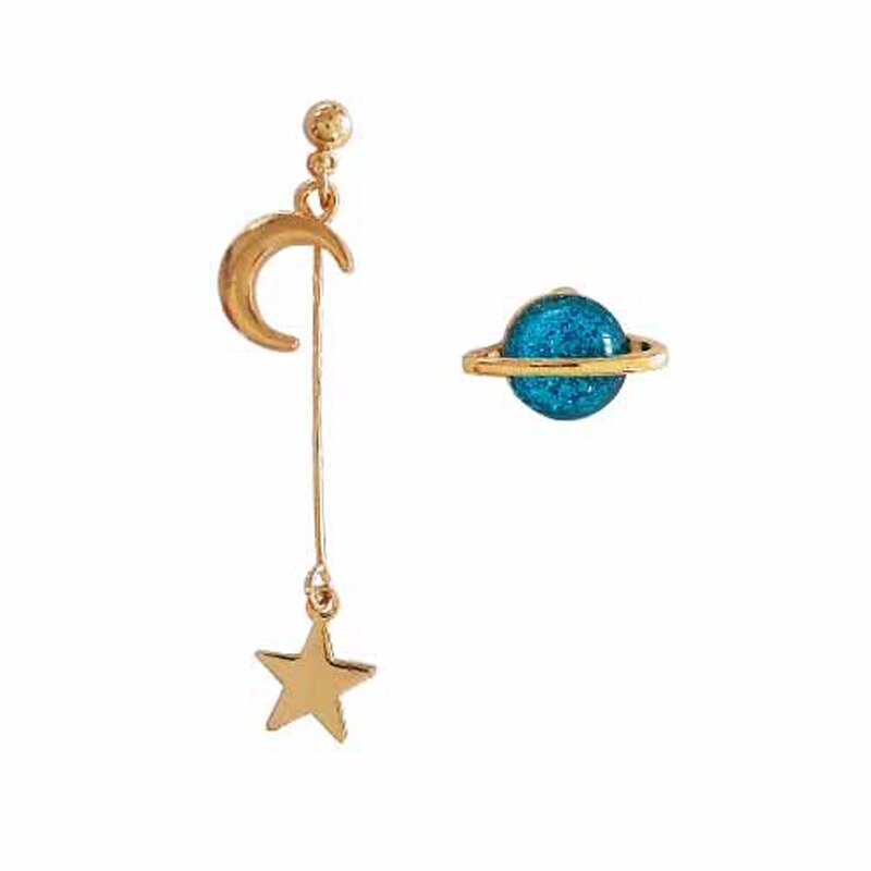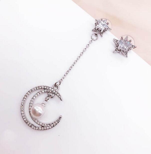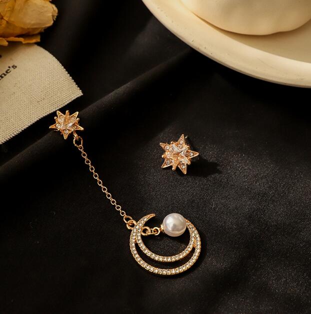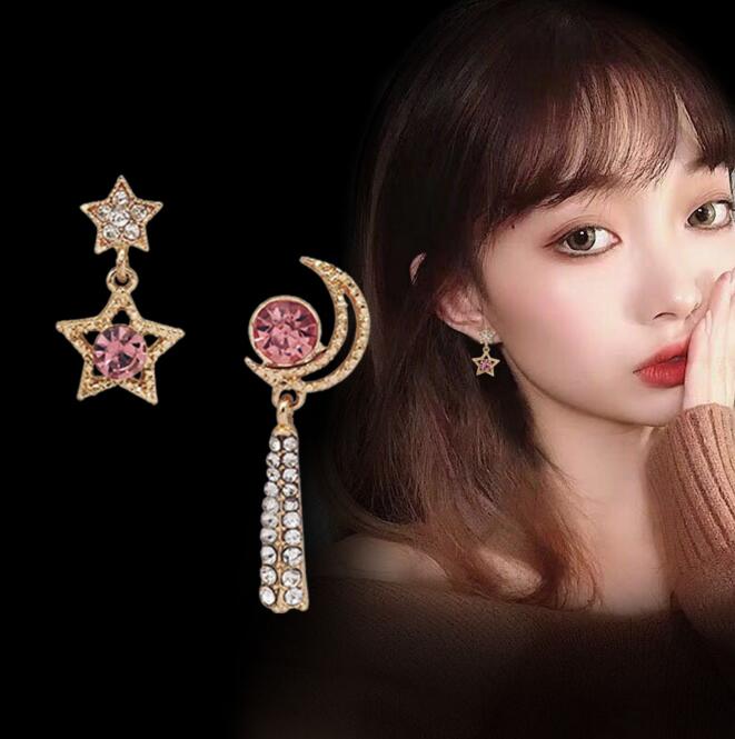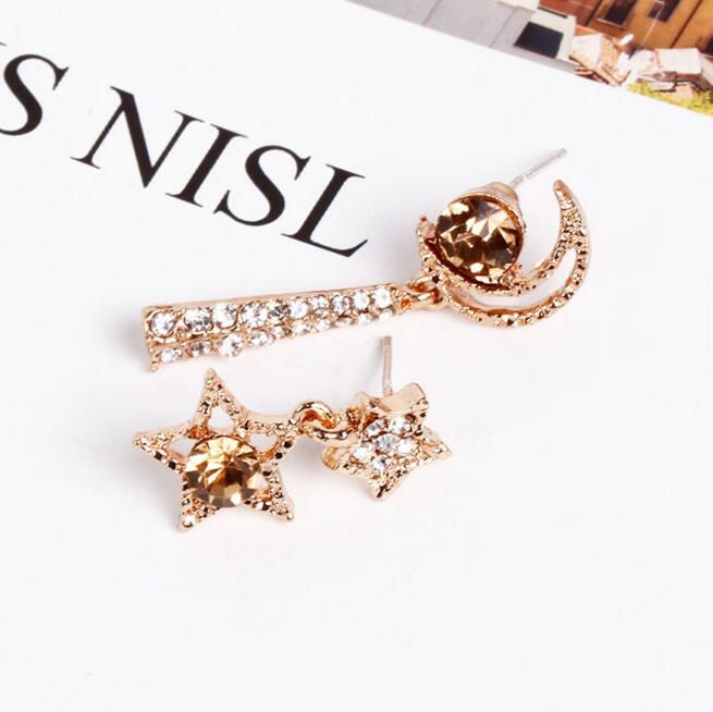 Korean Asymmetrical Star Moon Metal Drop Earrings