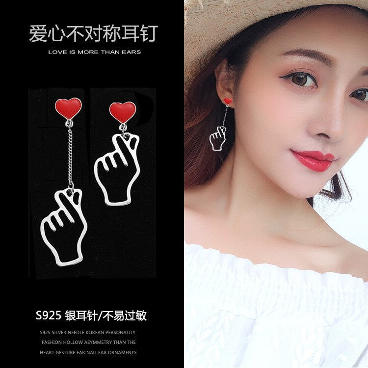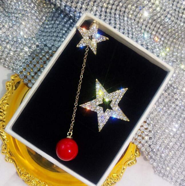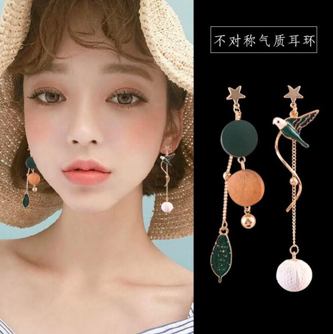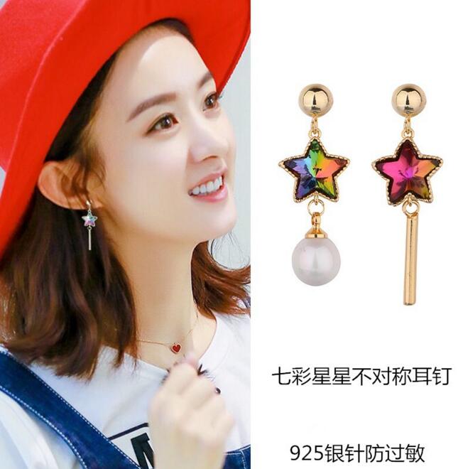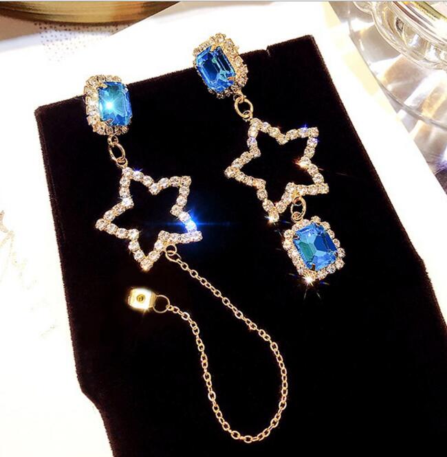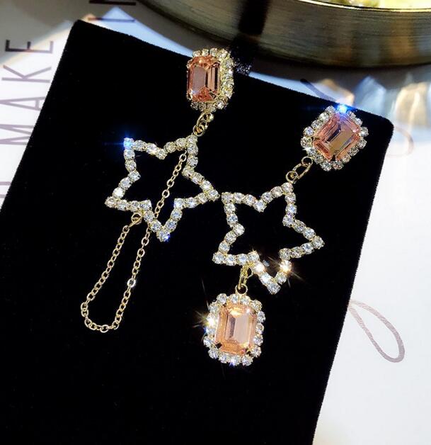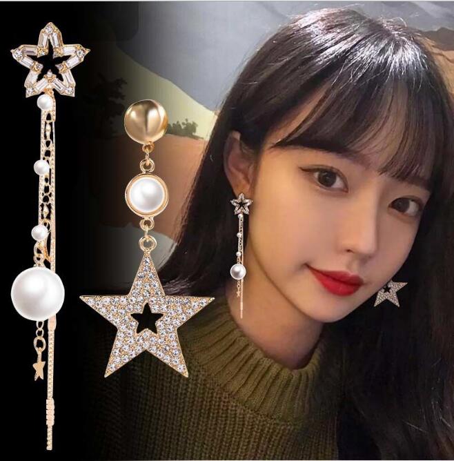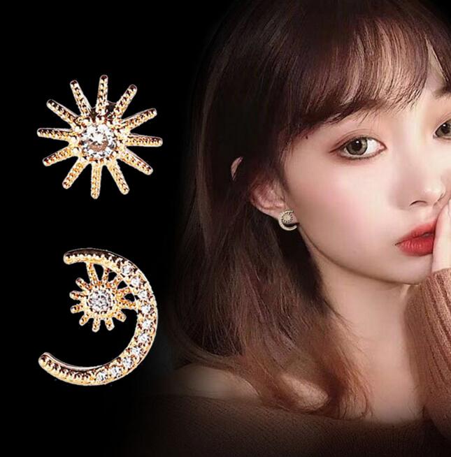 Korean Asymmetrical Star Moon Metal Drop Earrings