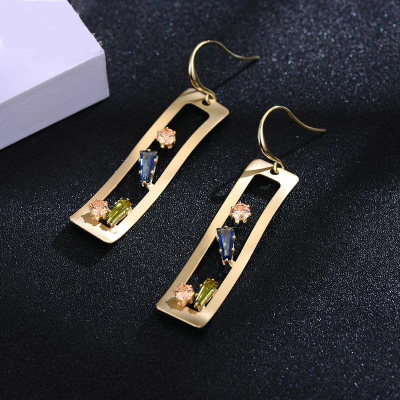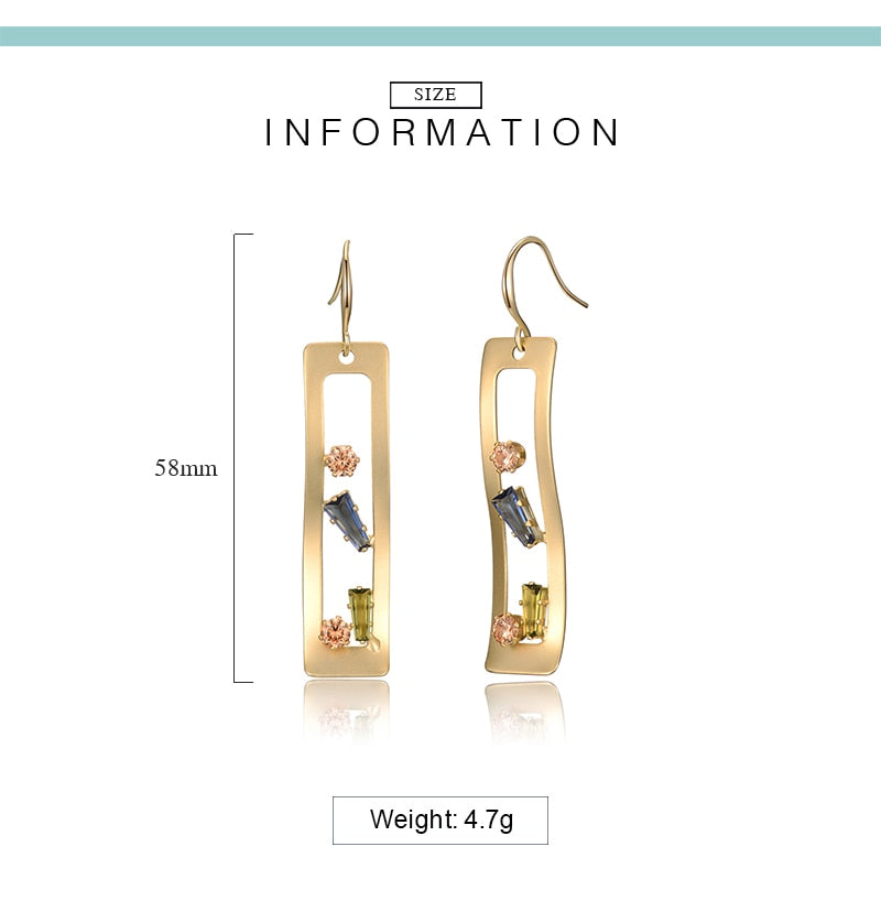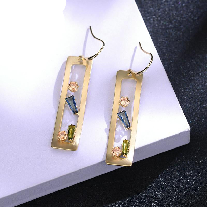 Korean Crystal Geometric Hollow Square Dangle Woman Drop Earrings