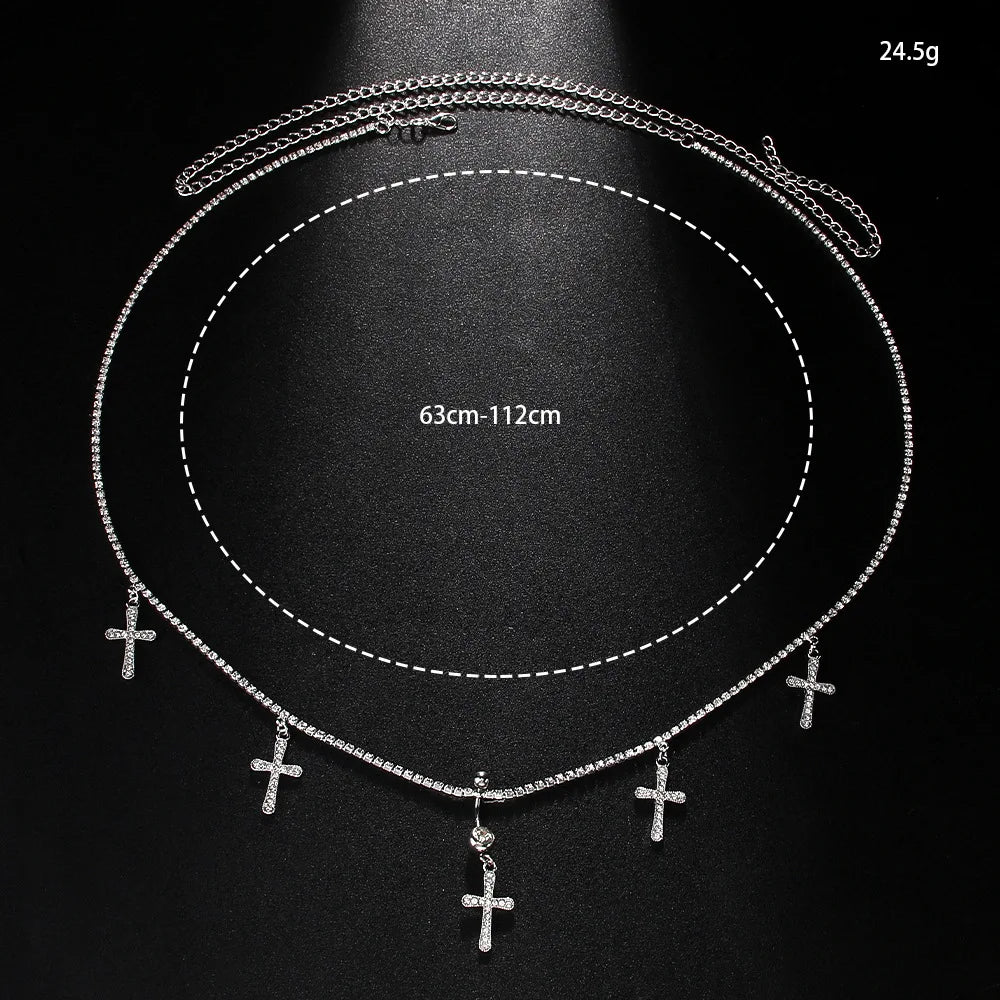 Introducing the One Over Two Body Jewelry, the perfect accessory for adding a touch of sparkle and style to any outfit! Made with high-quality copper and featuring a stunning cross-shaped rhinestone decoration, this belly chain is sure to catch the eye and elevate your look. Get yours today and shine bright!