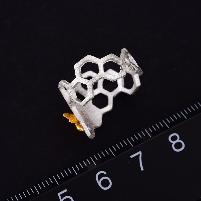 Small Bee 18k Gold Plated Honeycomb Open Rings