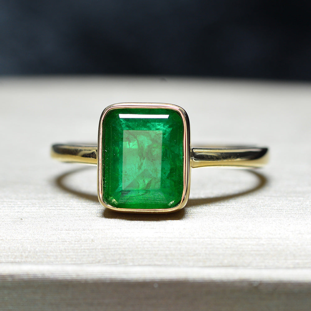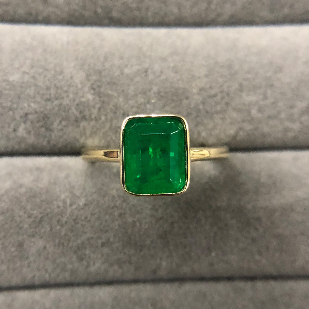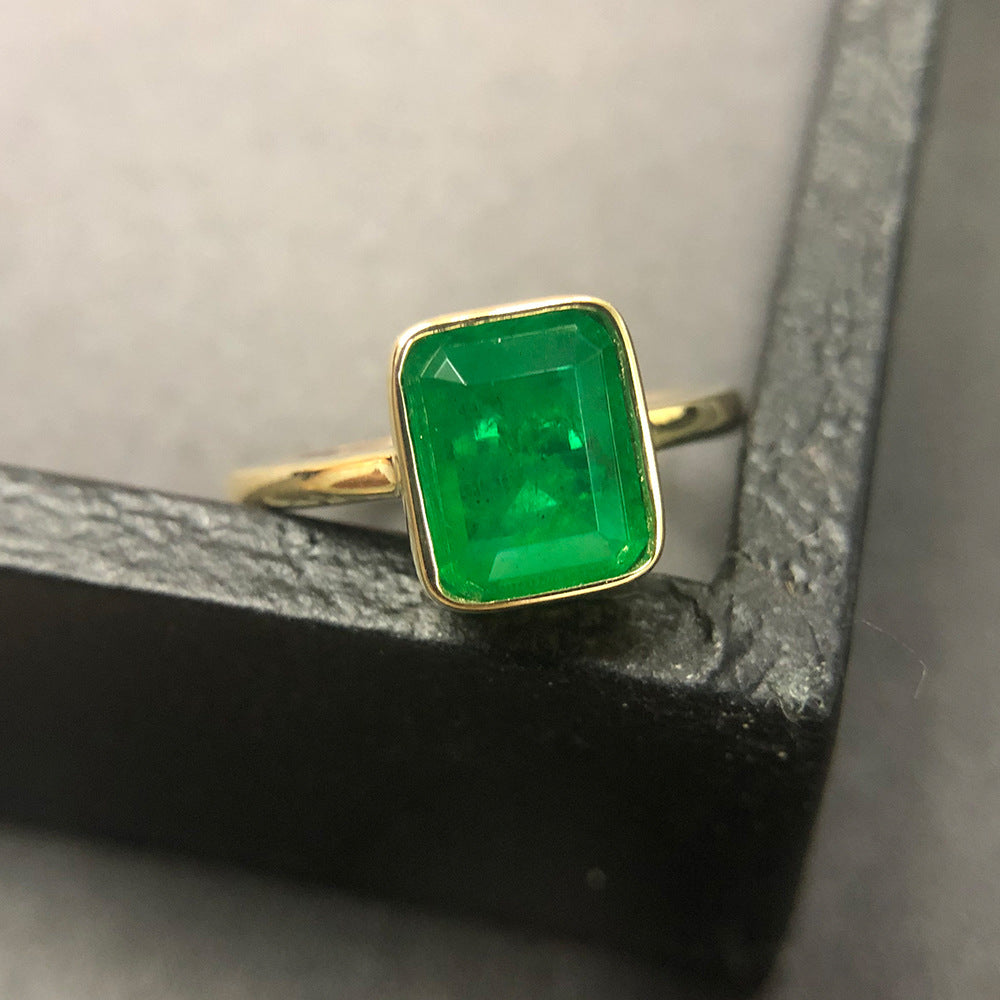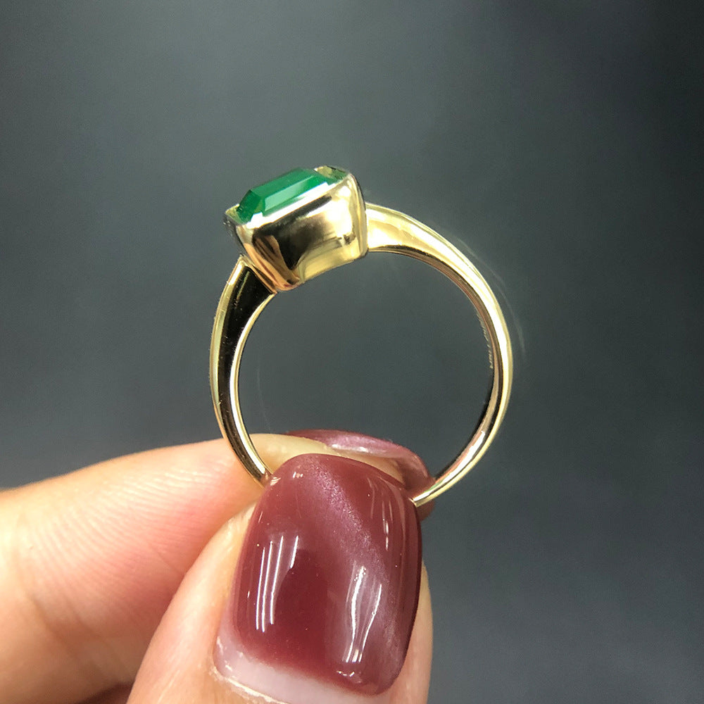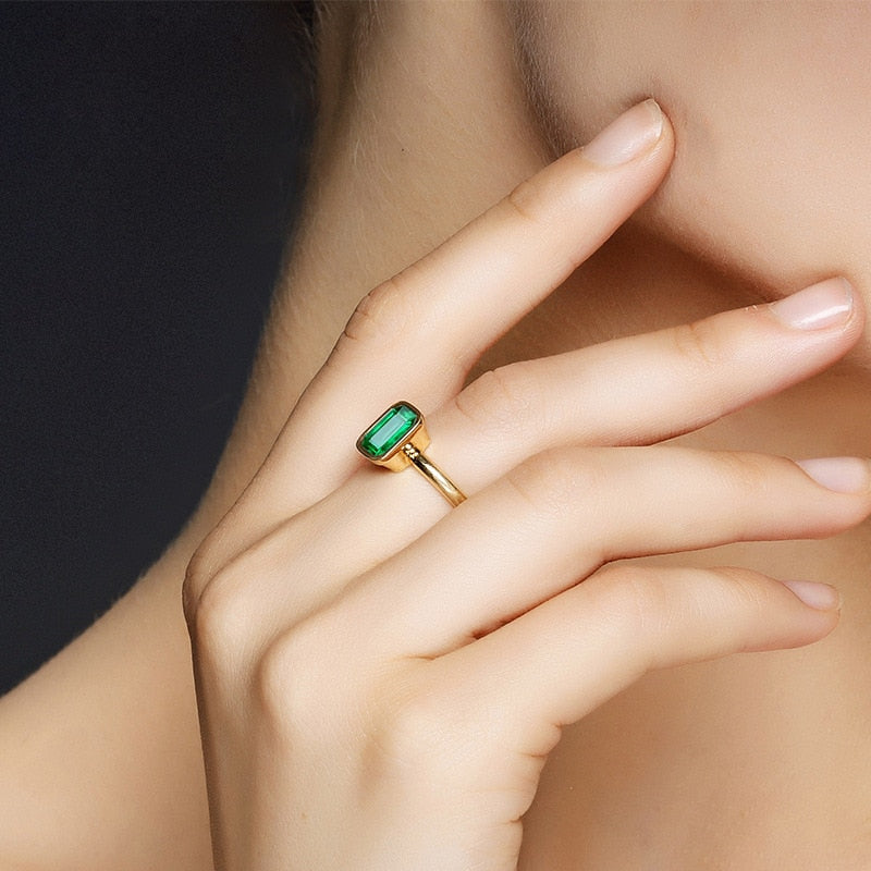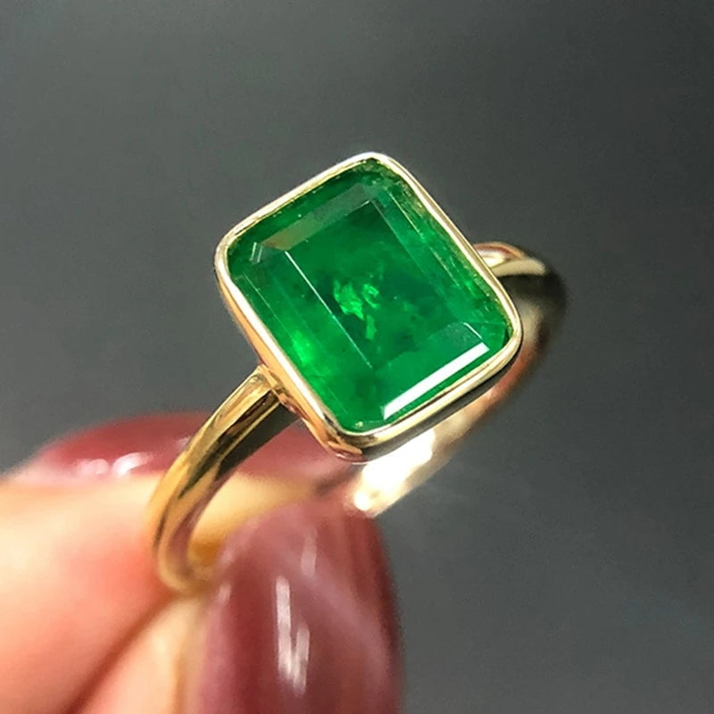 Vintage 925 Golden Rings with Natural 18k Gold Emerald Rectangle Beveled Stone