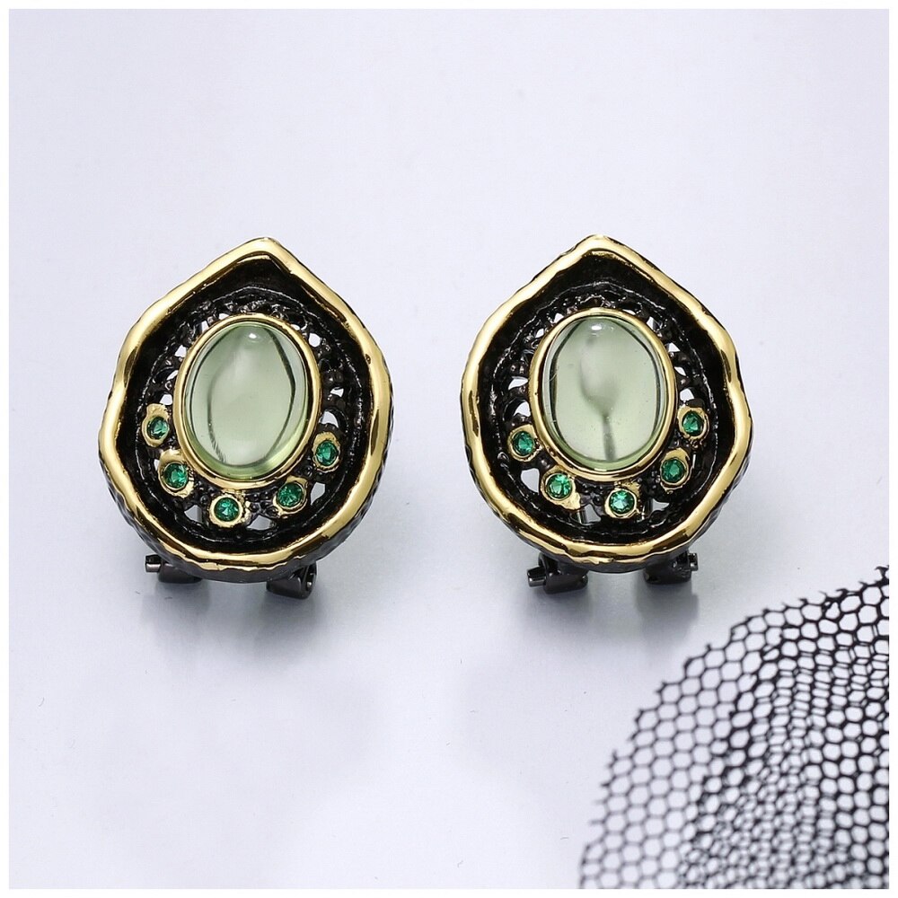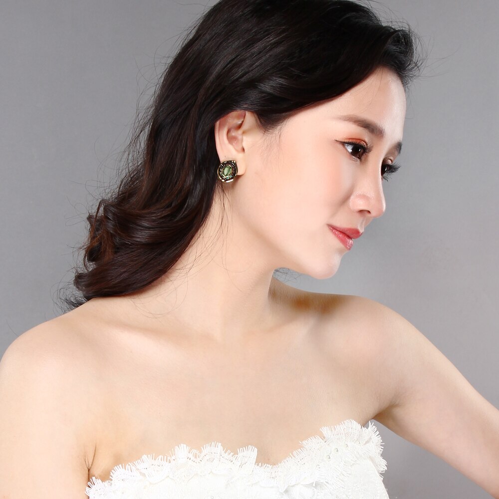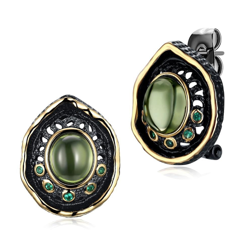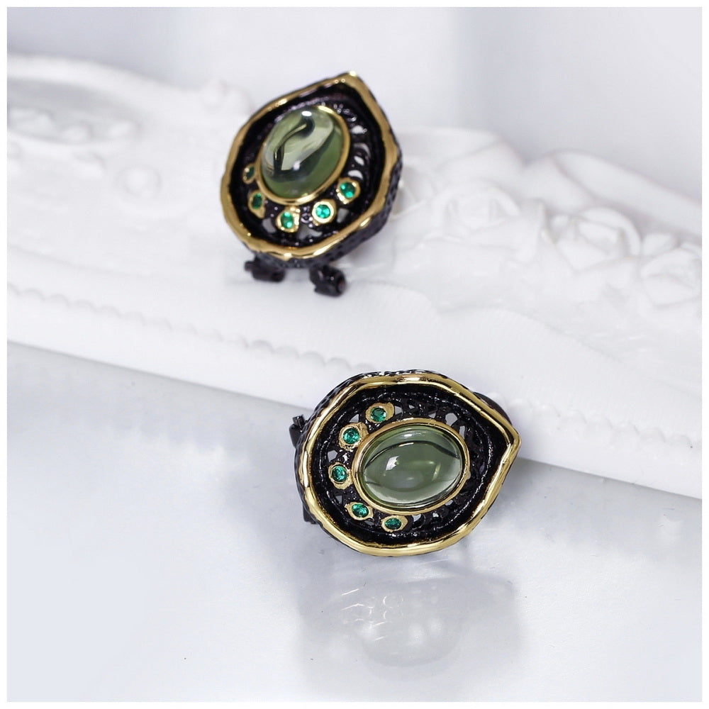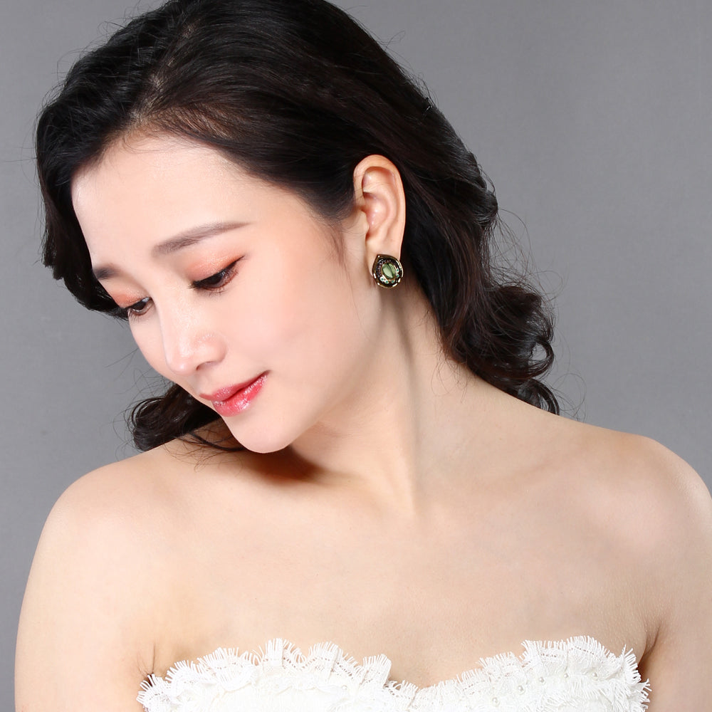 Vintage Water Drop Transparent Green Bead Stud Woman Earrings