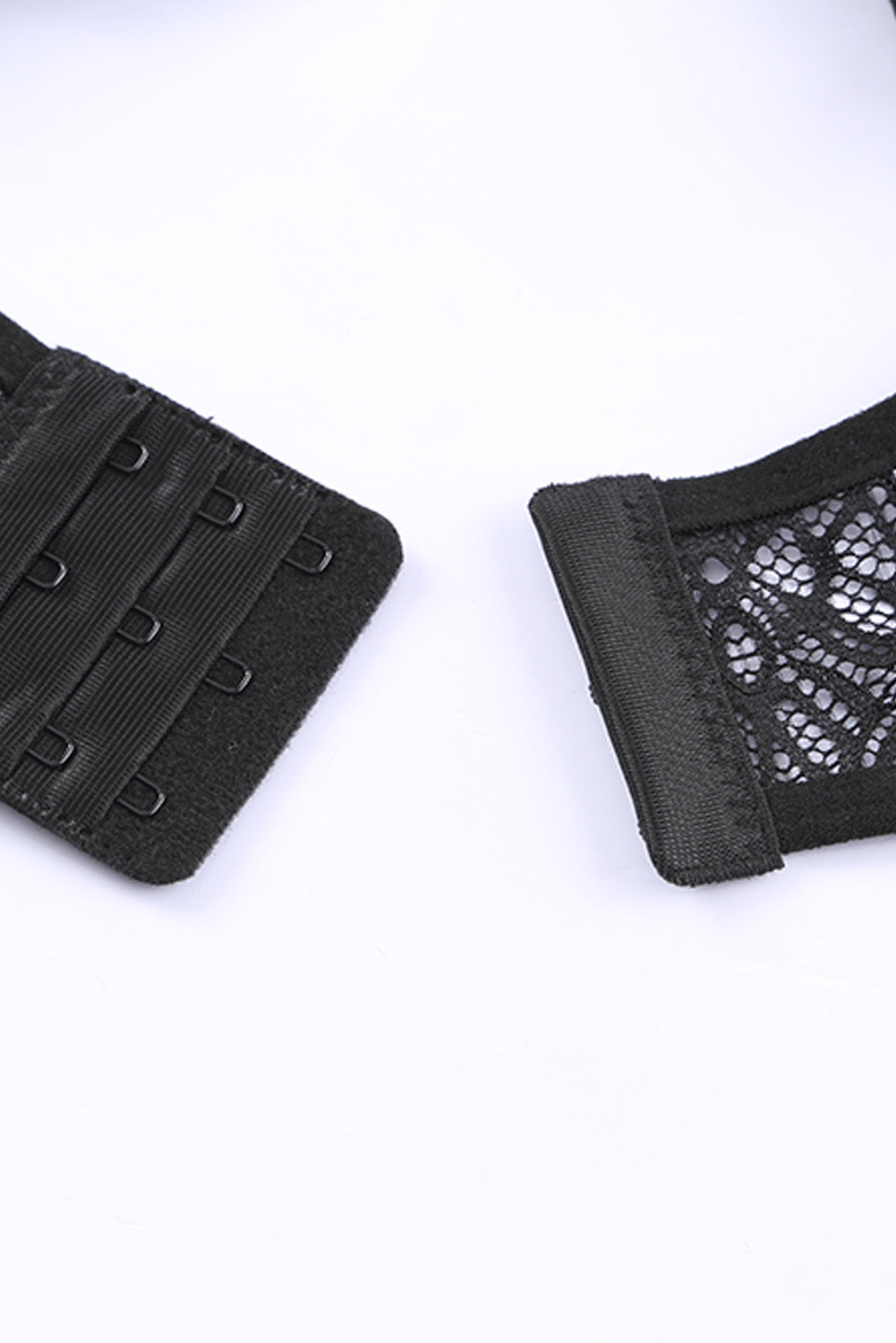 Black 3Pcs Open Cup Lace Strappy Lingerie Set