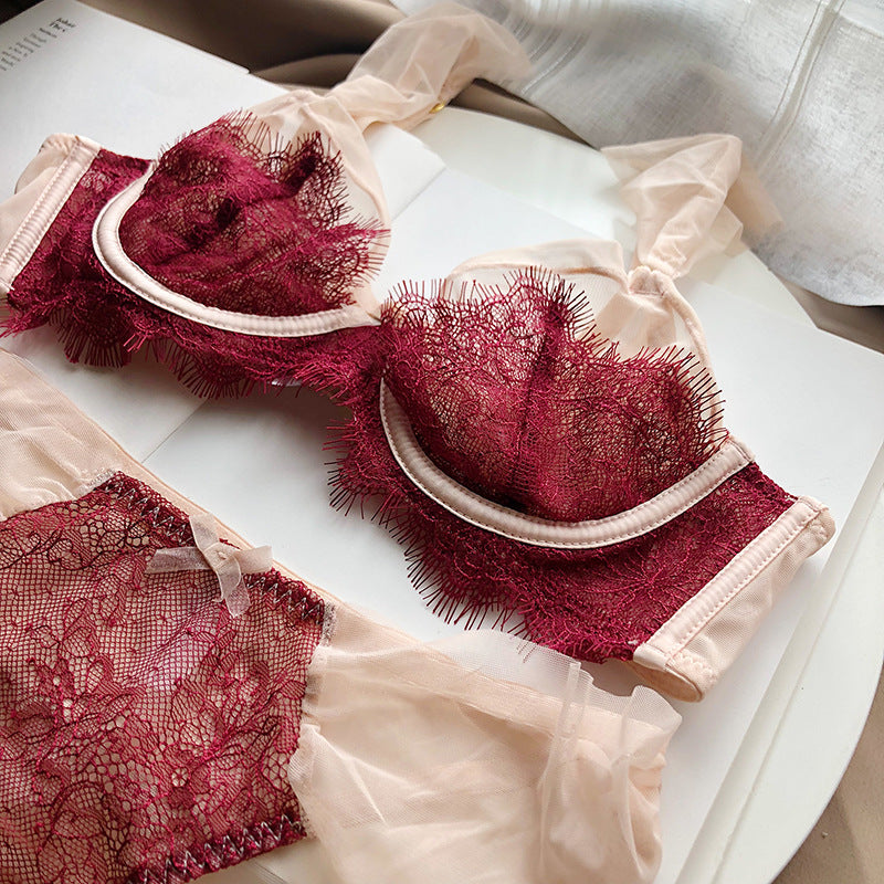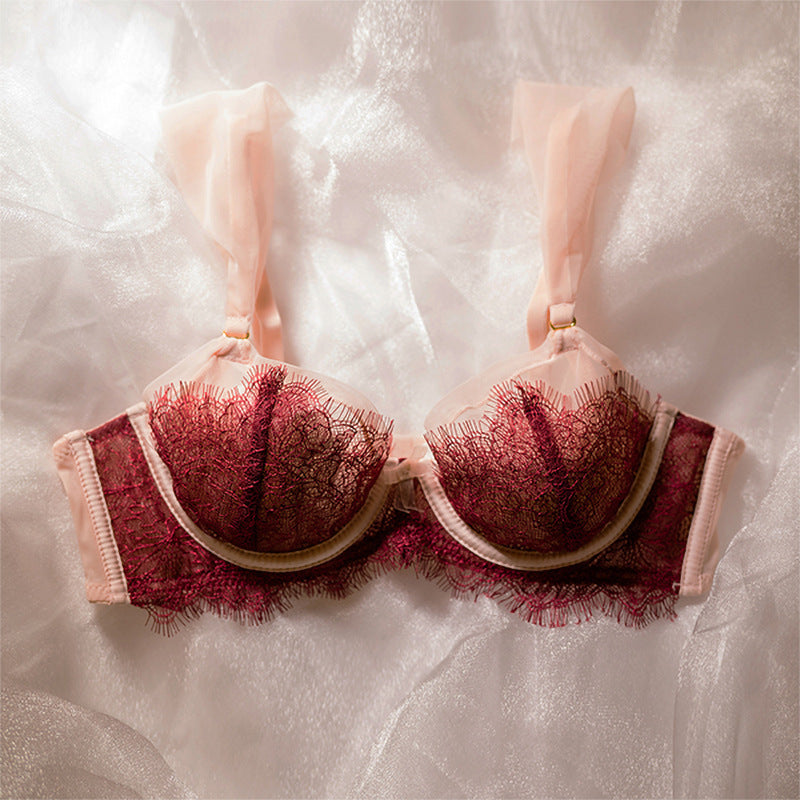 Push-Up Polyester Bra Sets with Mesh Silk Fabric Decoration, Two Hook-and-Eye Closure