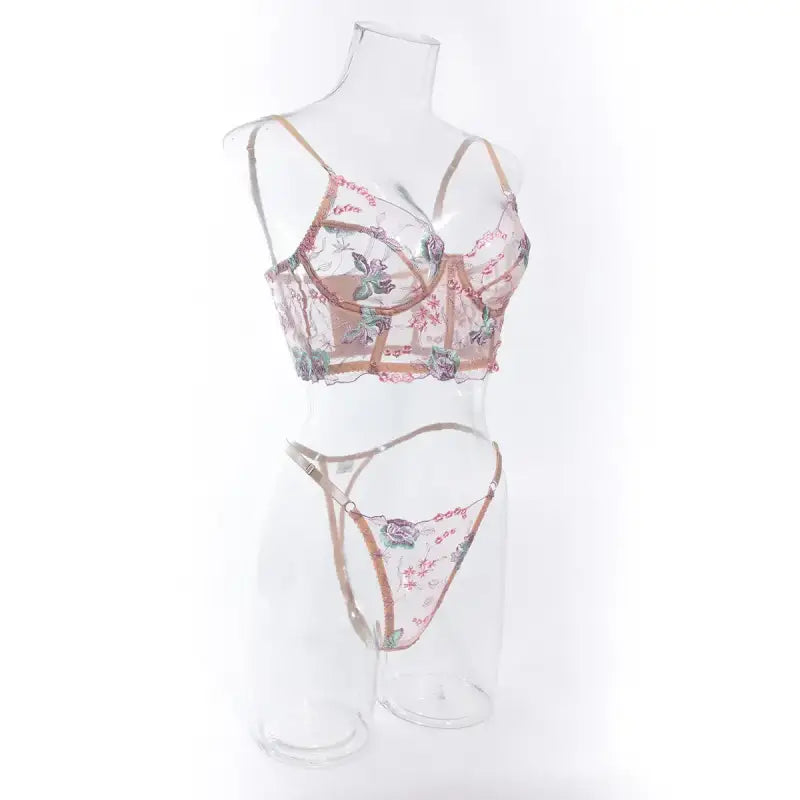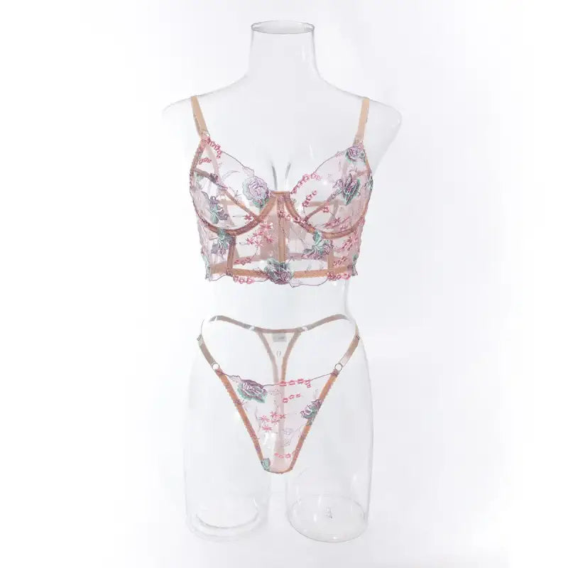 Floral Sheer Bustier Corset Set