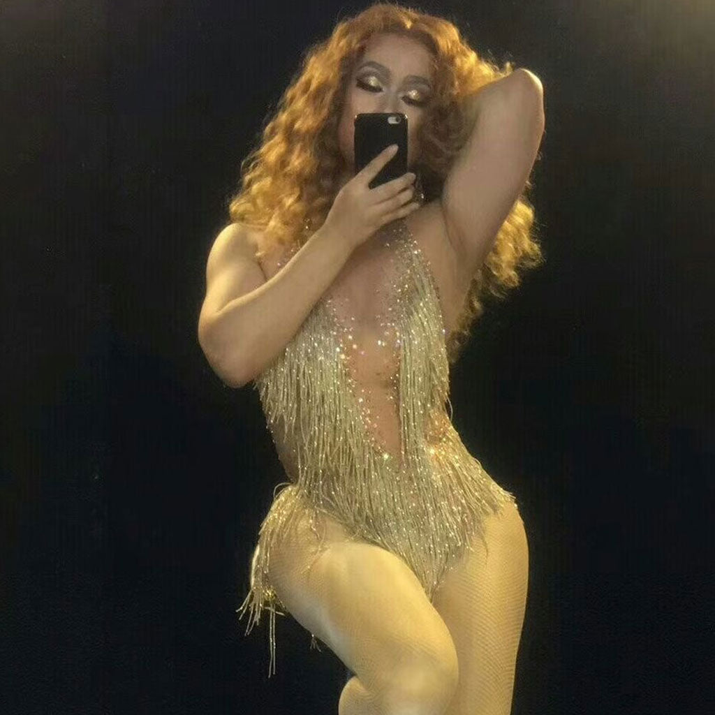 Sparkly Crystal Halter Neck Sequined Fringe Sleeveless Club Bodysuit