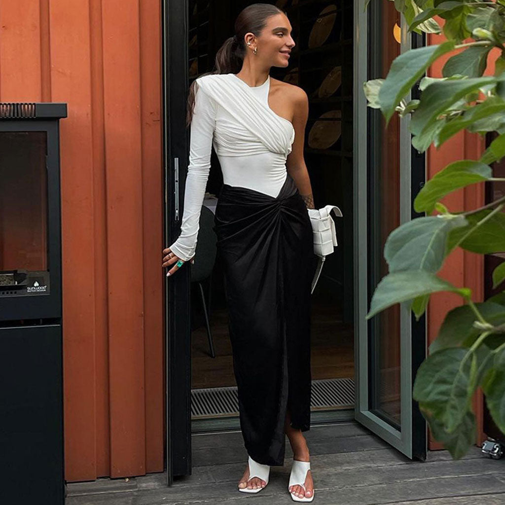 Unique One Shoulder Twist Front Long Sleeve Bodysuit - White
