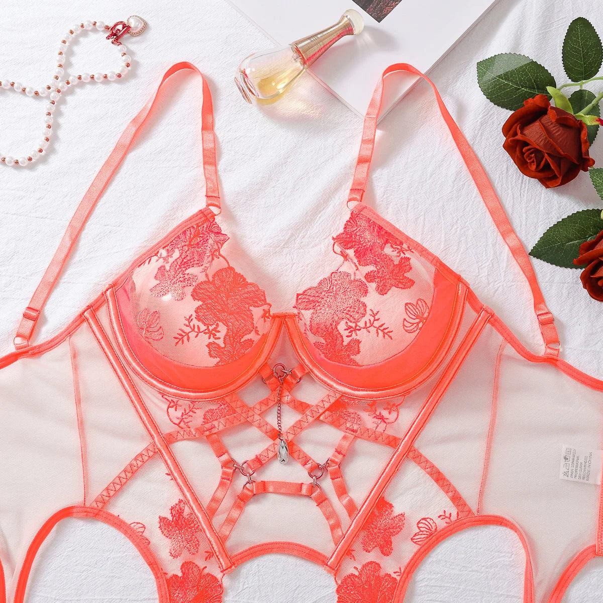 Experience sheer beauty and elegance with our lingerie set. Made with delicate floral embroidery and soft polyester, this set will make you feel confident and feminine. Treat yourself to the luxury you deserve, because you've waited your whole life for this.