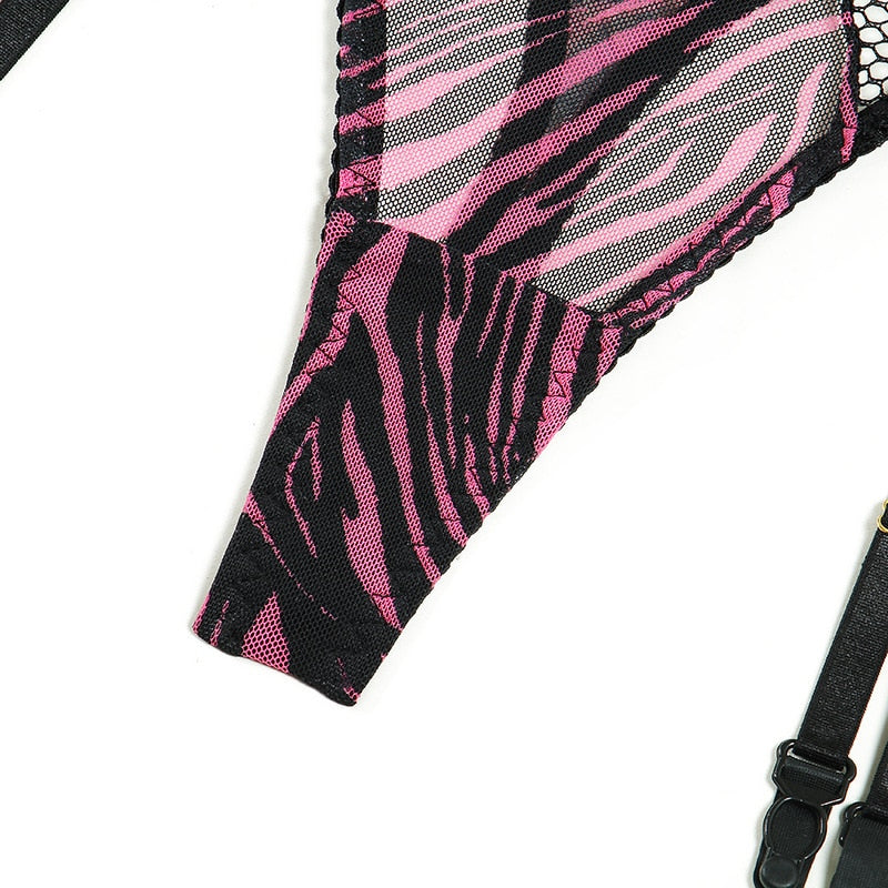 The Want To Get It Lingerie collection offers sophisticated lingerie for any occasion. It provides adjustable and non-convertible straps for a secure and comfortable fit, along with an underwire for extra support. Styled with an animal print and decorated with delicate lace, this collection is made of linen and offers an ultra-thin cup thickness. With a back closure and unlined three-quarter cup shape, it is perfect for any occasion.