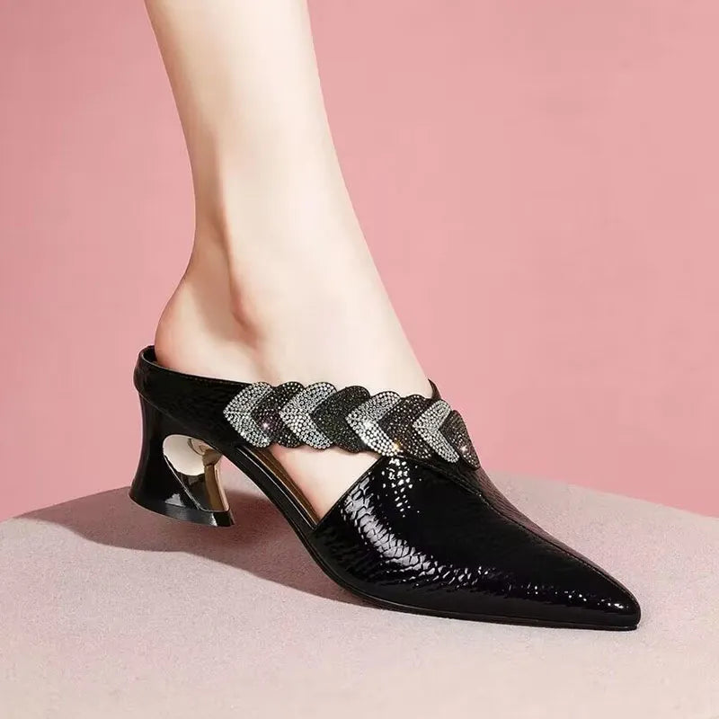 Elevate your style with our Back To The Stars Mules Shoes. Made of high-quality PU and embellished with sparkling rhinestones, these shoes will add a touch of glamour to any outfit. The comfortable 5-8cm heel and sturdy rubber outsole make them perfect for everyday wear. Step into the stars with these must-have mules.