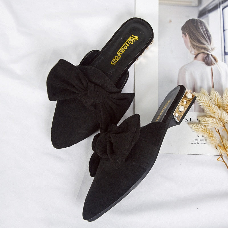 Canvas Bonded Leather Solid Color Pointed Toe with Luxury Low Heels Women Mules Shoes