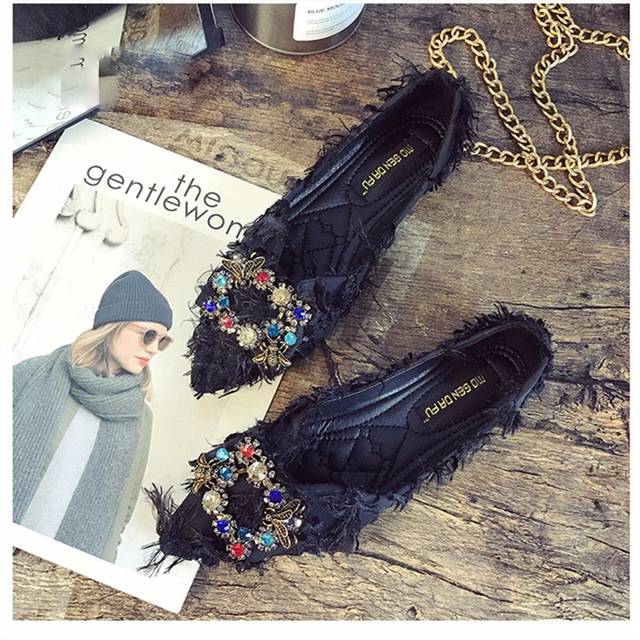 Casual Bow Rhinestone Pointed Toe Slip On Women Flat
