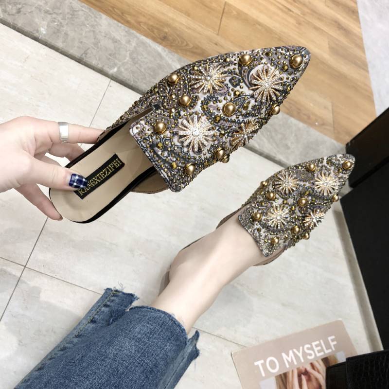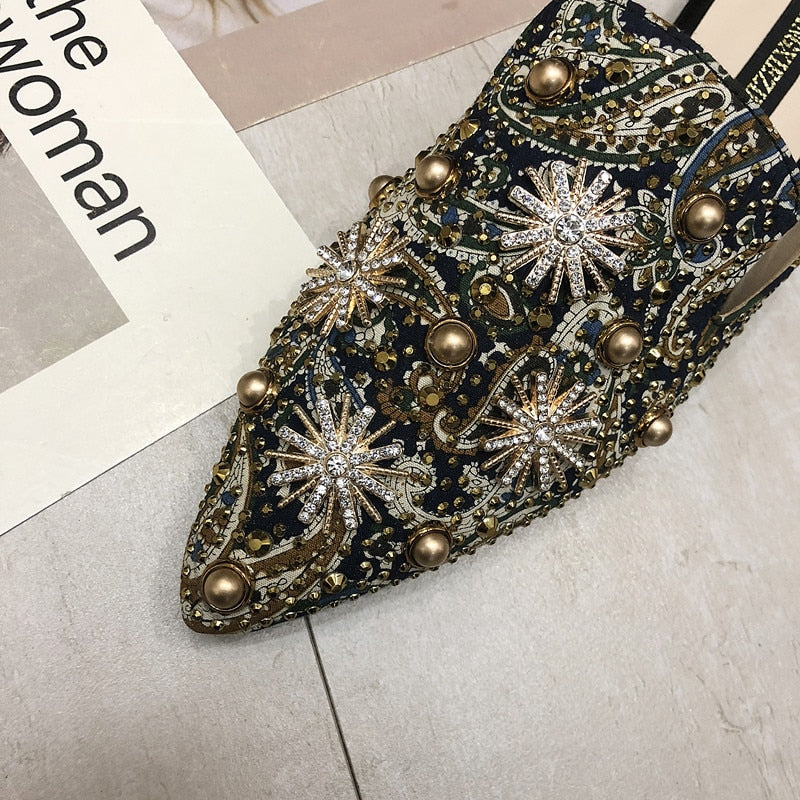 Casual Pointed Toe Floral Rivet Slingback Slip On Women Mules Shoes