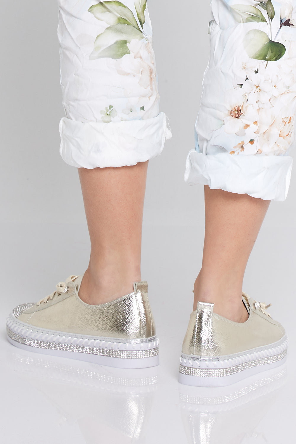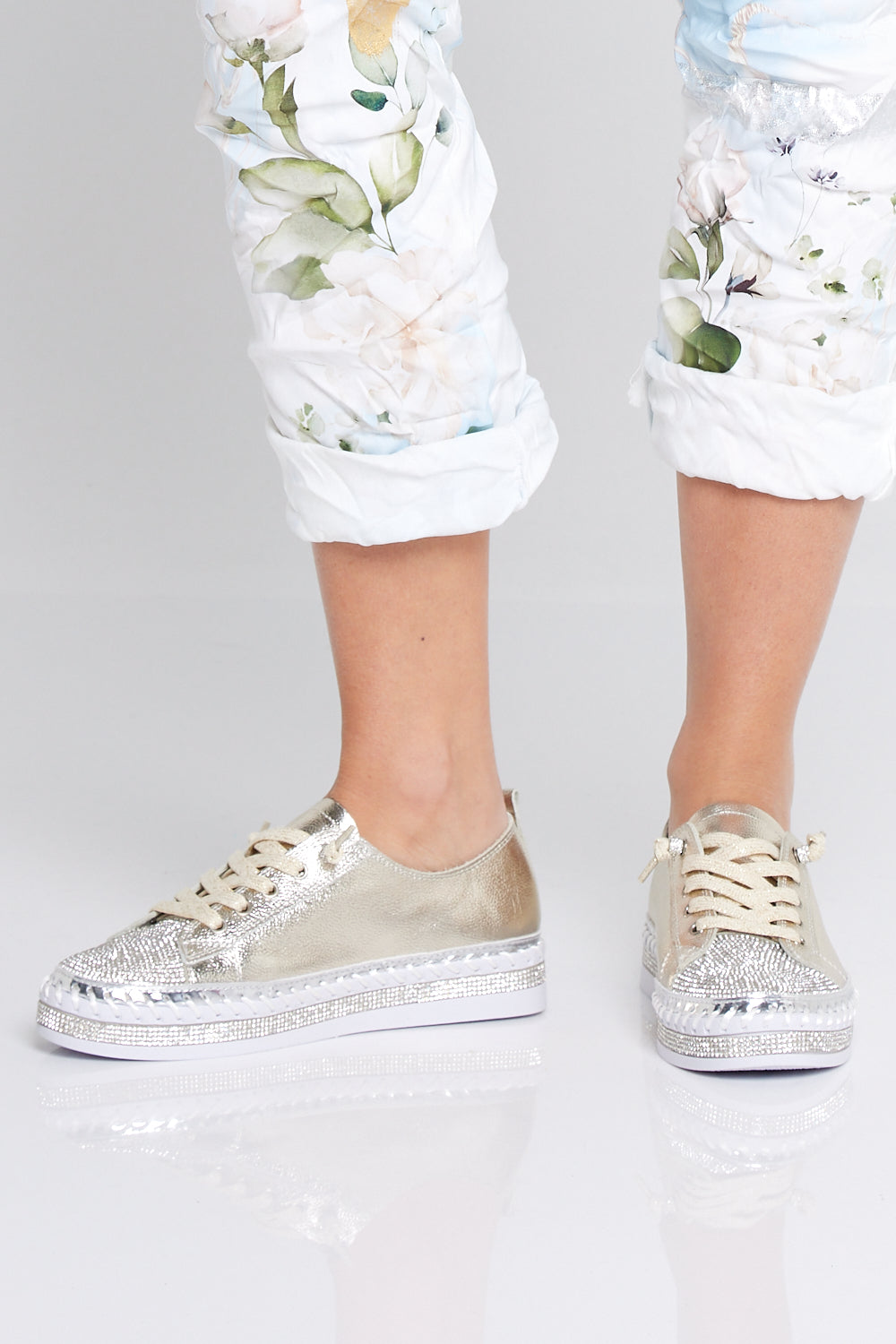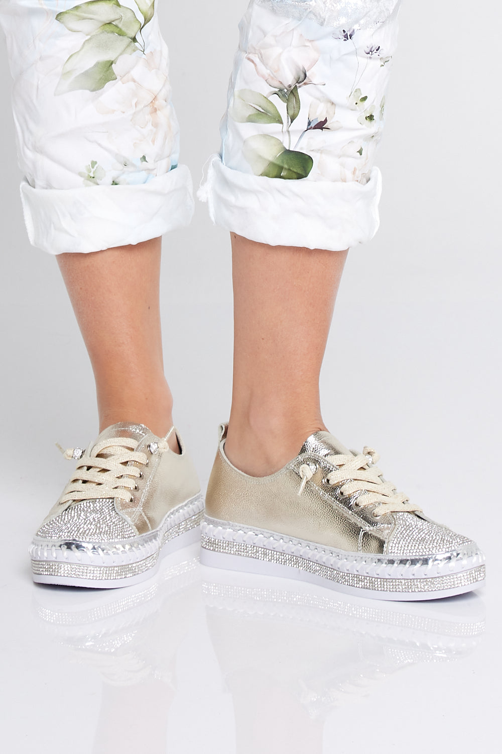 Sia Sparkle Leather Sneakers - Gold/Diamanté
